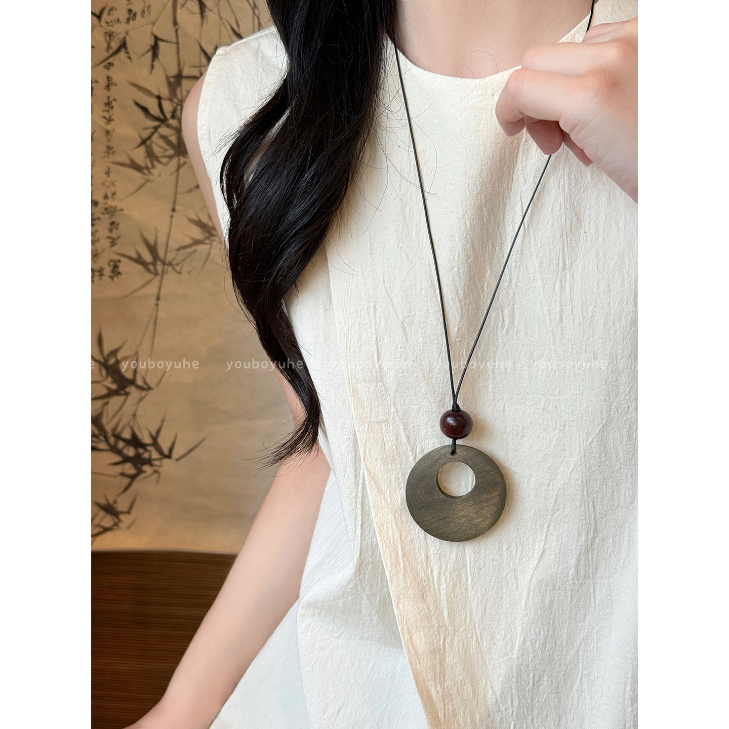 复古民族风禅意平安扣编绳项链女新中式长款木质毛衣链挂脖配饰