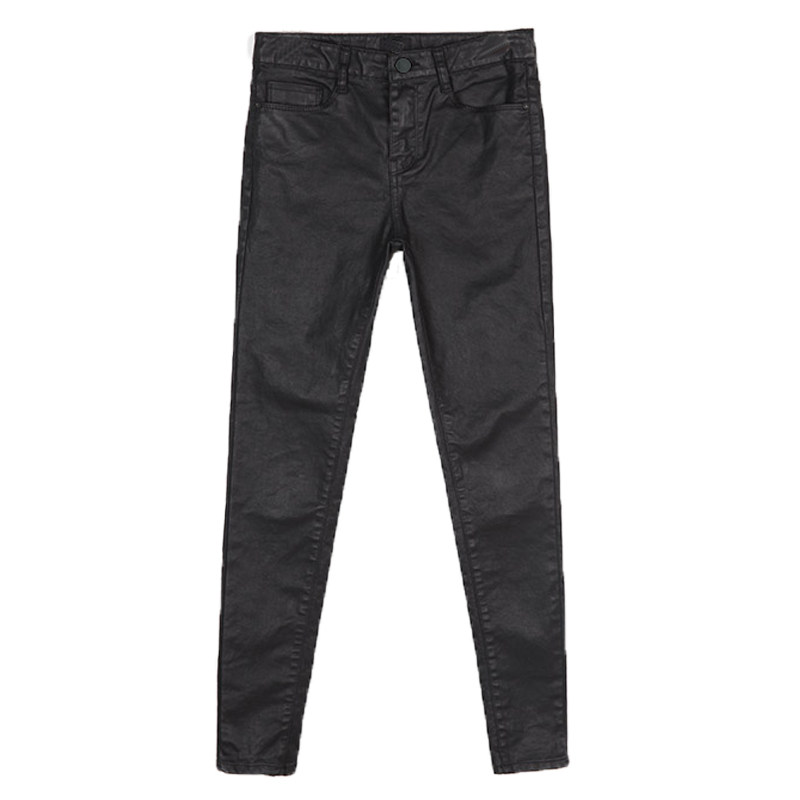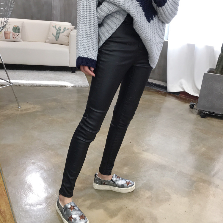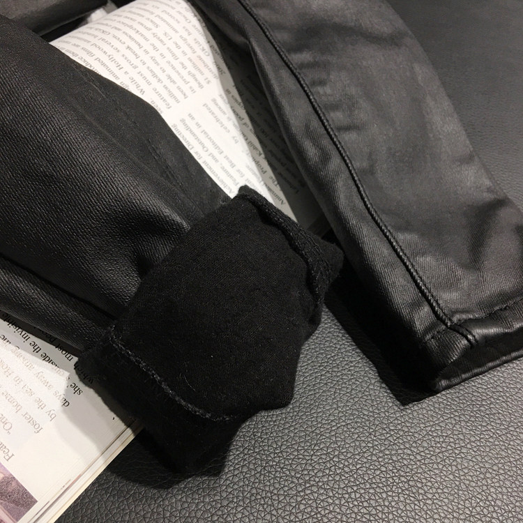 秋冬加绒涂层牛仔裤哑光皮裤
