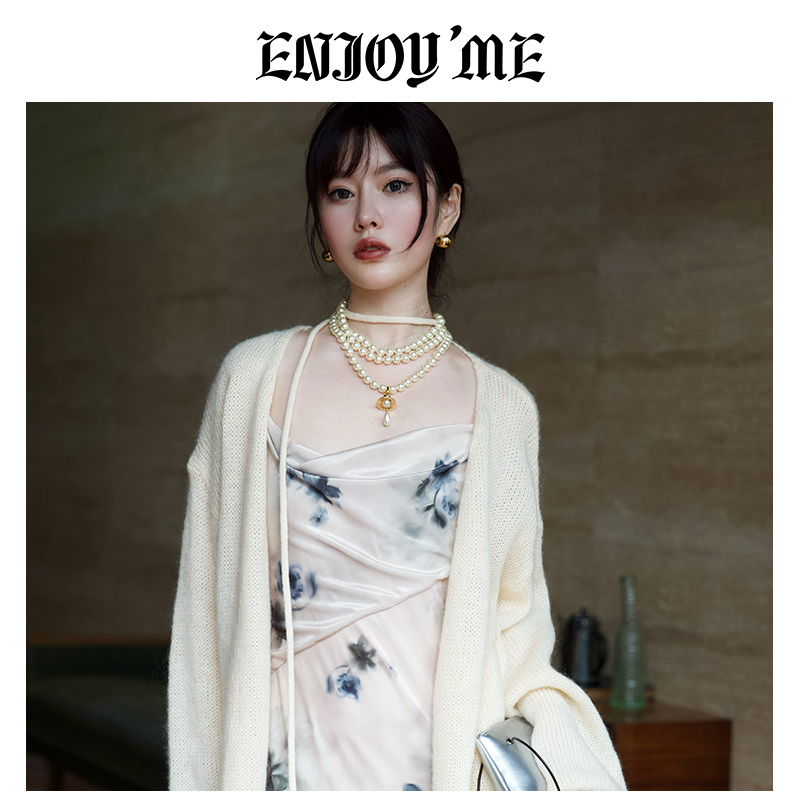 ENJOYME商场同款法式气质高级感吊带连衣裙女夏季新款收腰a字长裙