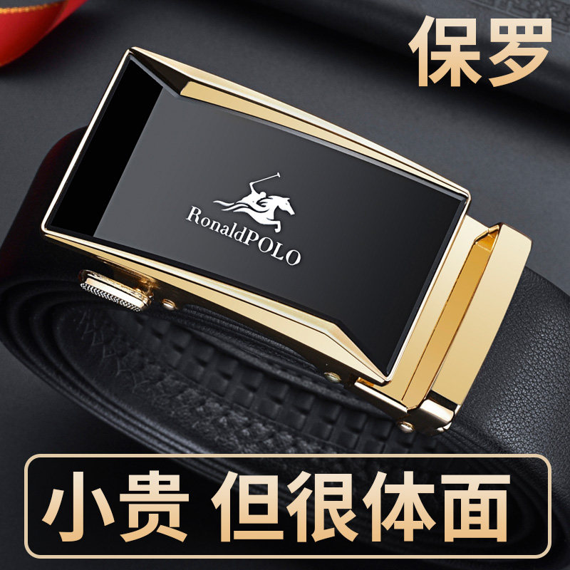 保罗正品皮带男真皮纯牛皮自动扣腰带高档商务休闲裤带男款裤腰带