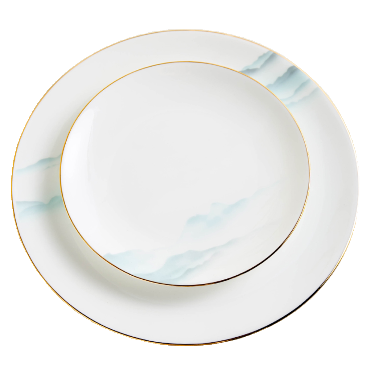 瓷唯雅金边摆台骨瓷酒店中式山水
