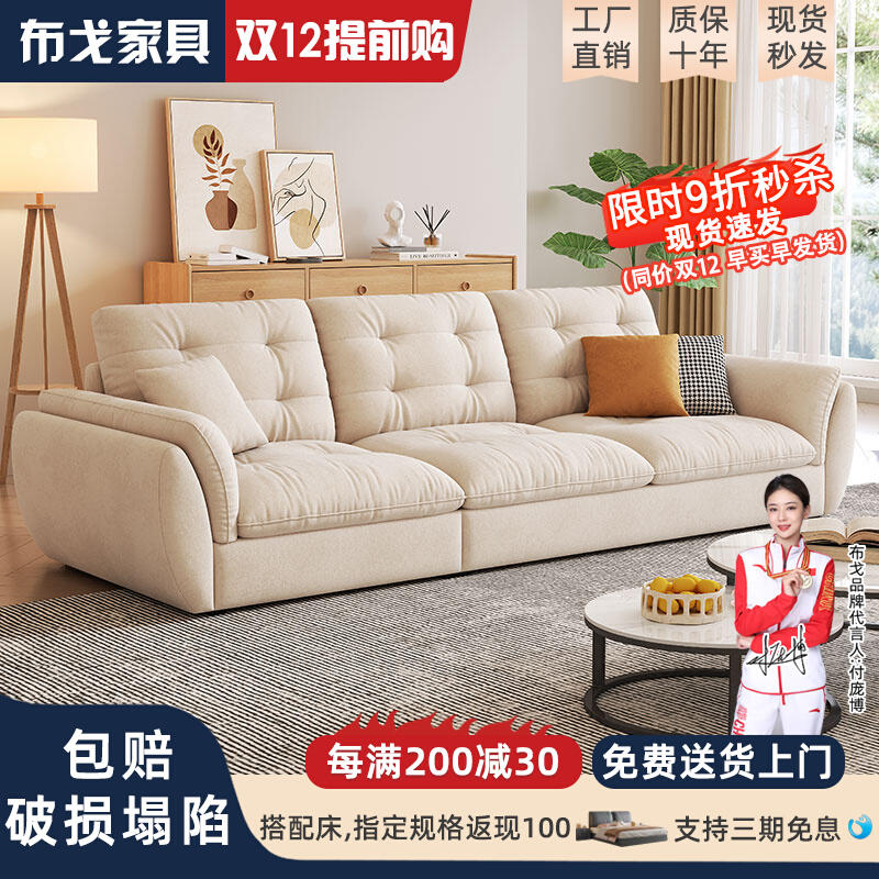 奶油风沙发免洗科技布客厅小户型云朵现代简约三人位直排布艺沙发