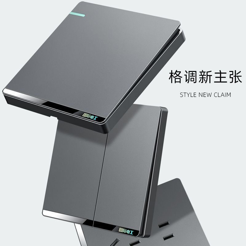 国际电工开关插座86型暗装家用灰色大板一开双控单控五孔USB面板