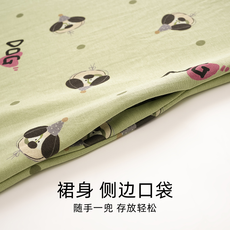 2025年新款春秋纯棉睡裙带胸垫中长款女士甜美套头长袖可外穿裙子