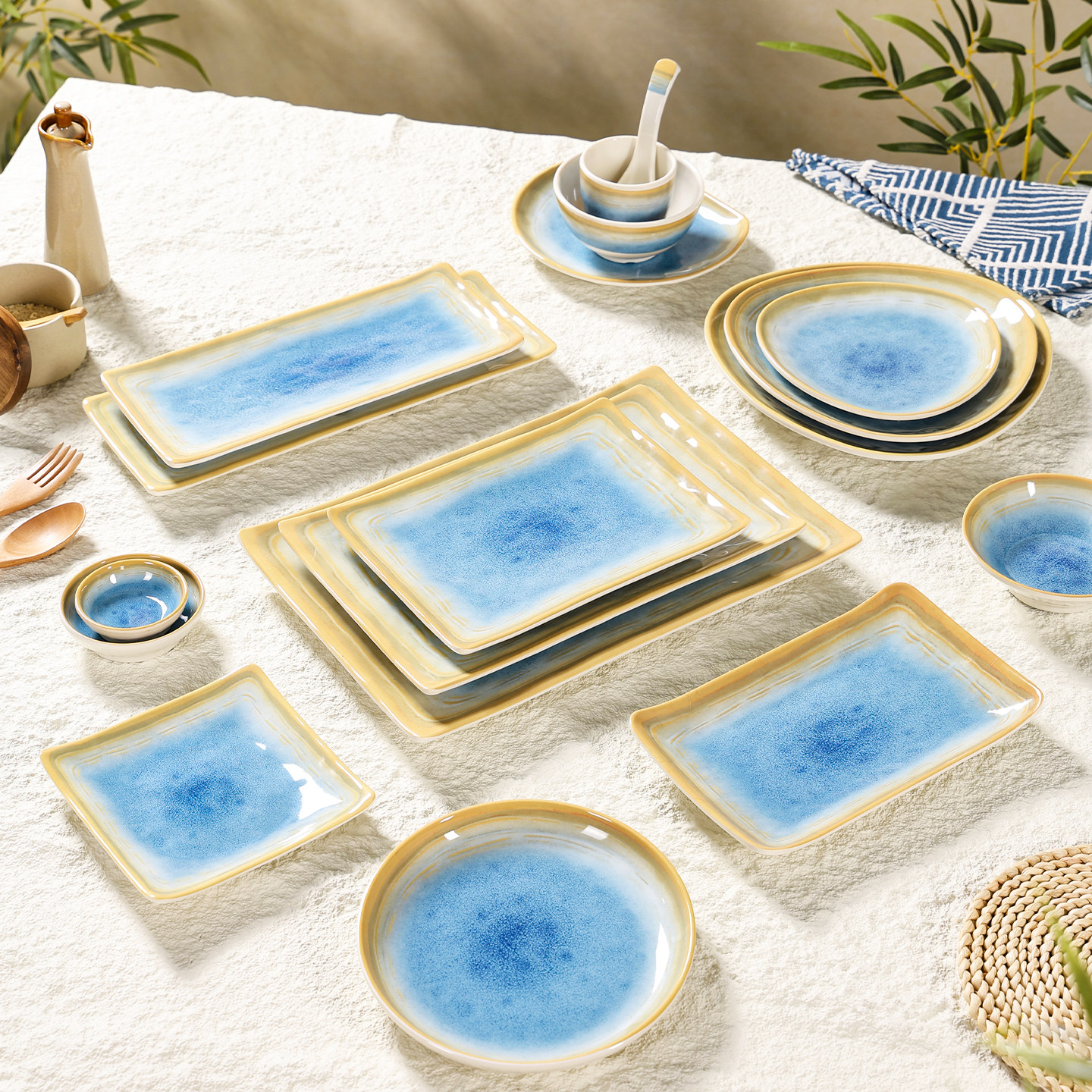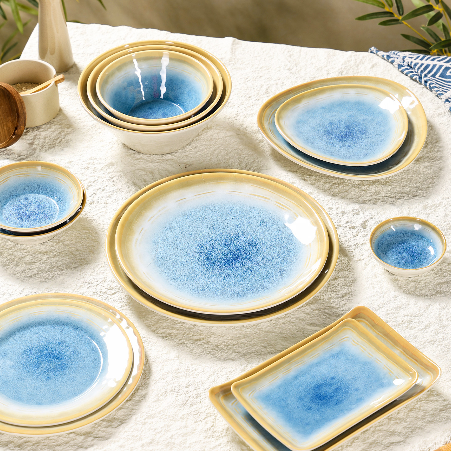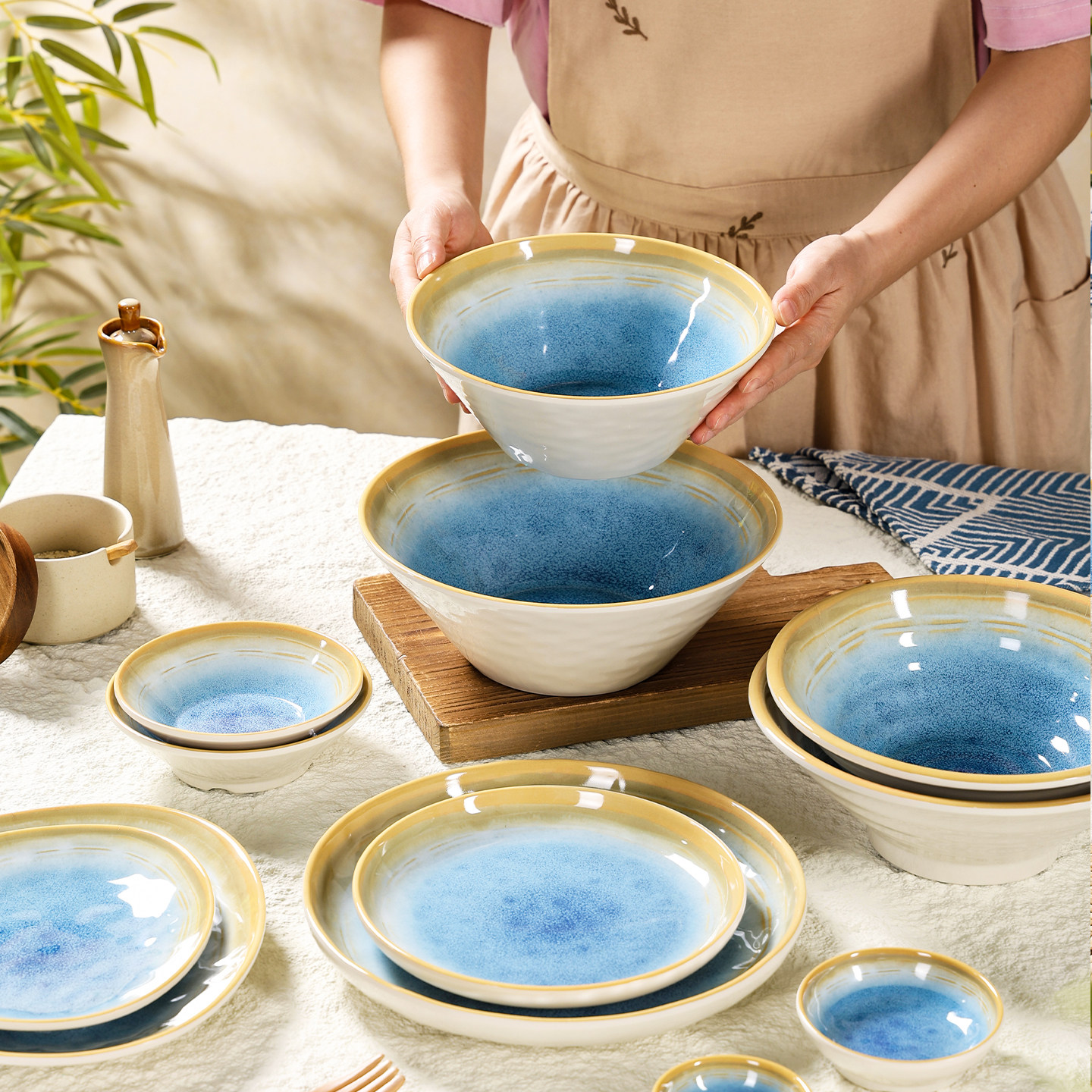 金镶烟波蓝密胺餐具高档餐厅商用盘子高级感饭店专用仿瓷意境菜盘