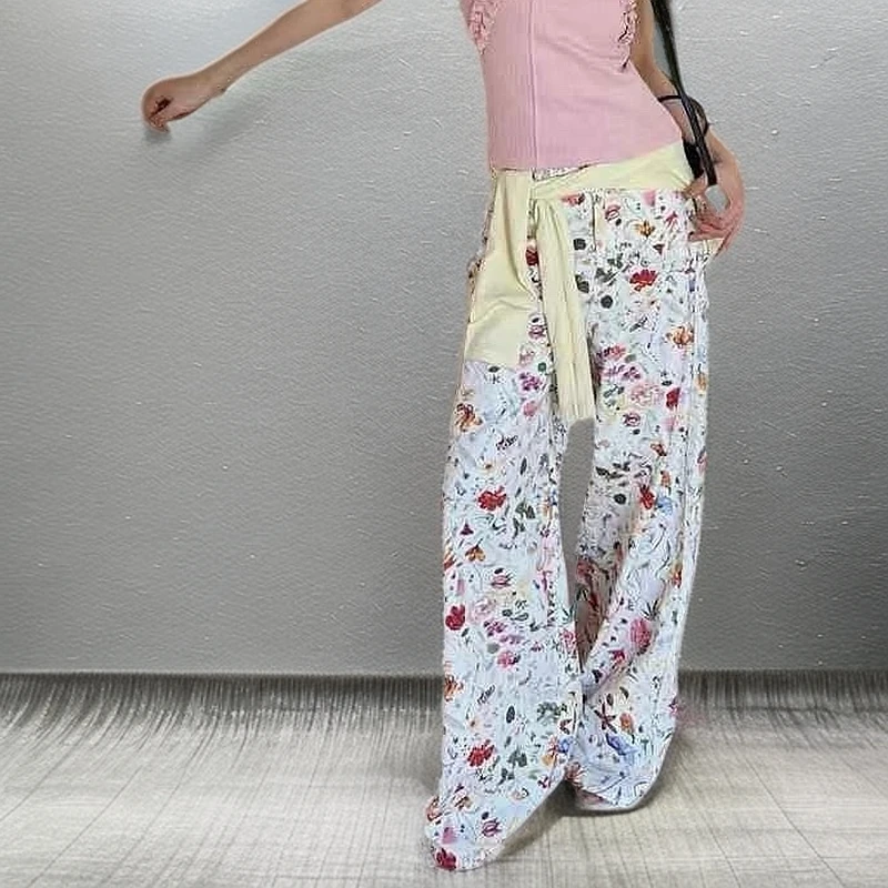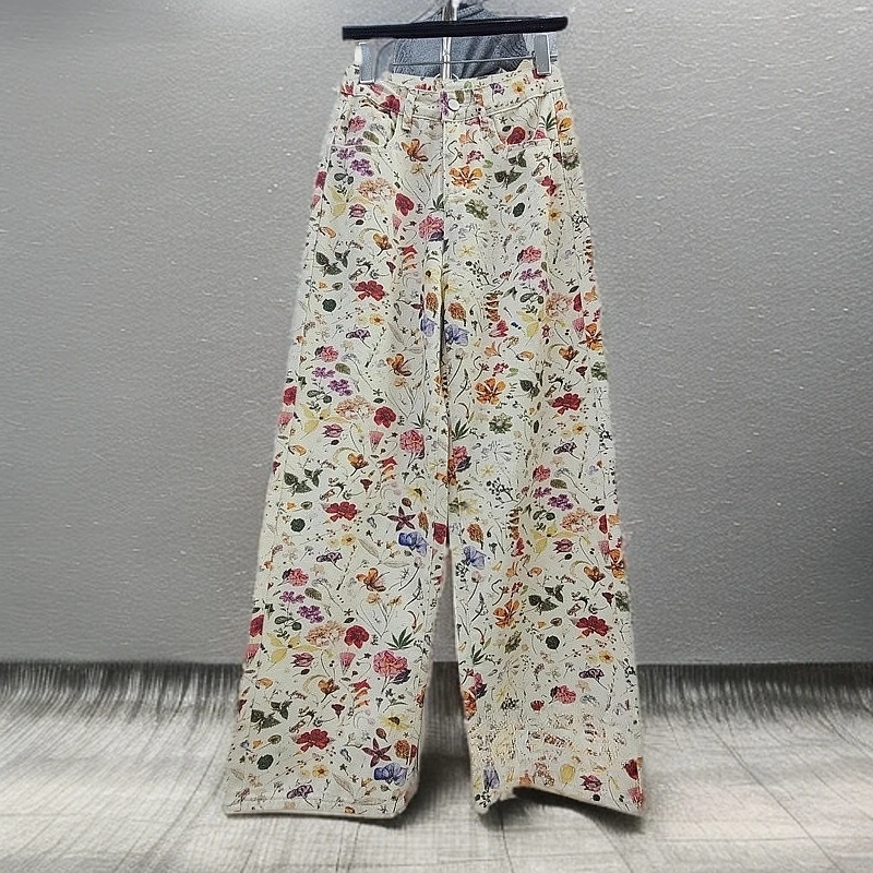 2025年流行网红女裤美式复古高腰显瘦牛仔裤宽松百搭直筒阔腿长裤