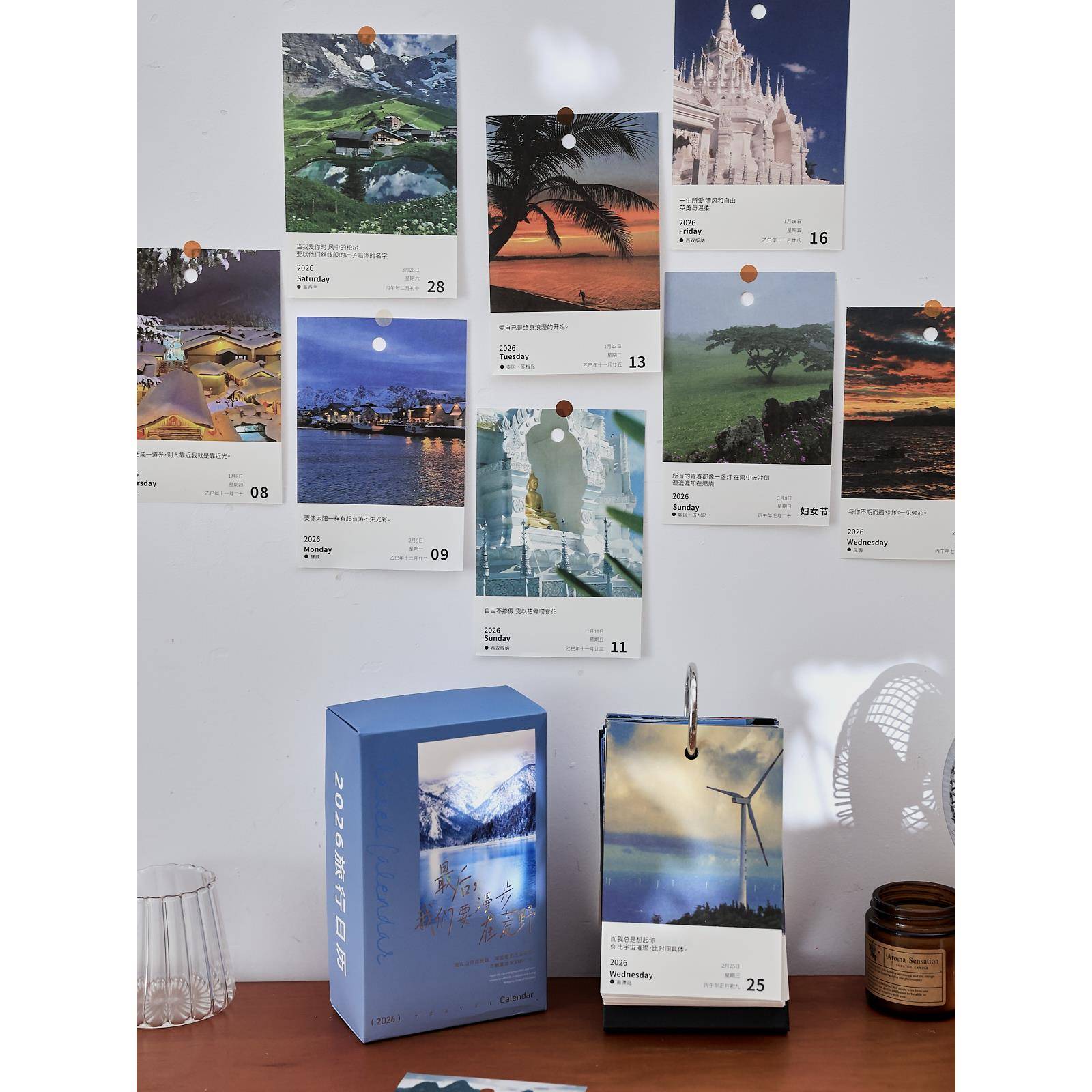 2026年漫步旅行日历 ins治愈自由风景文案365办公桌面摆件台历