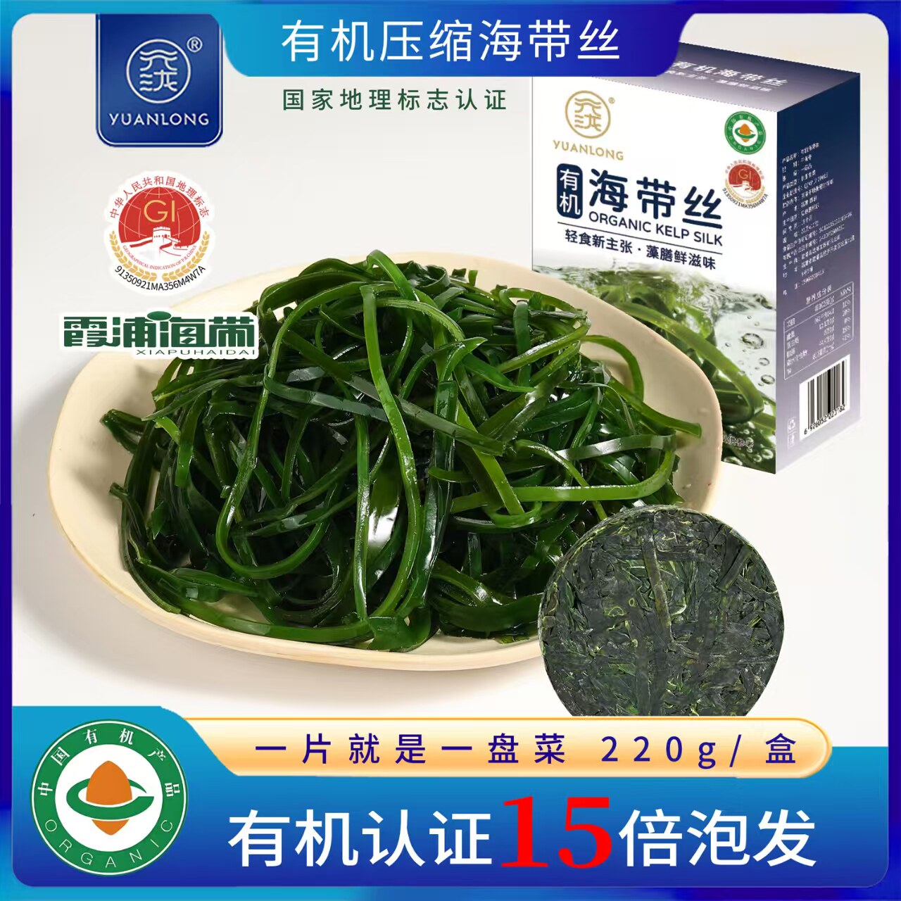 元泷有机压缩海带丝高泡发干货无盐无沙免洗煲汤火锅凉拌菜小包装