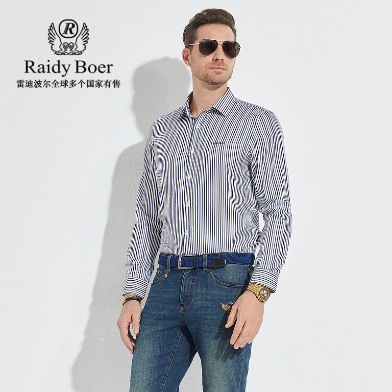 【100%棉】Raidy Boer/雷迪波尔男装刺绣撞色条纹长袖衬衫9006-67