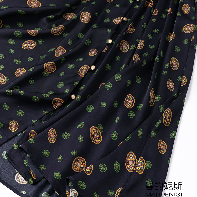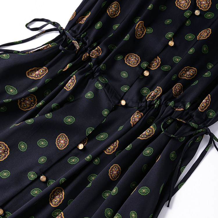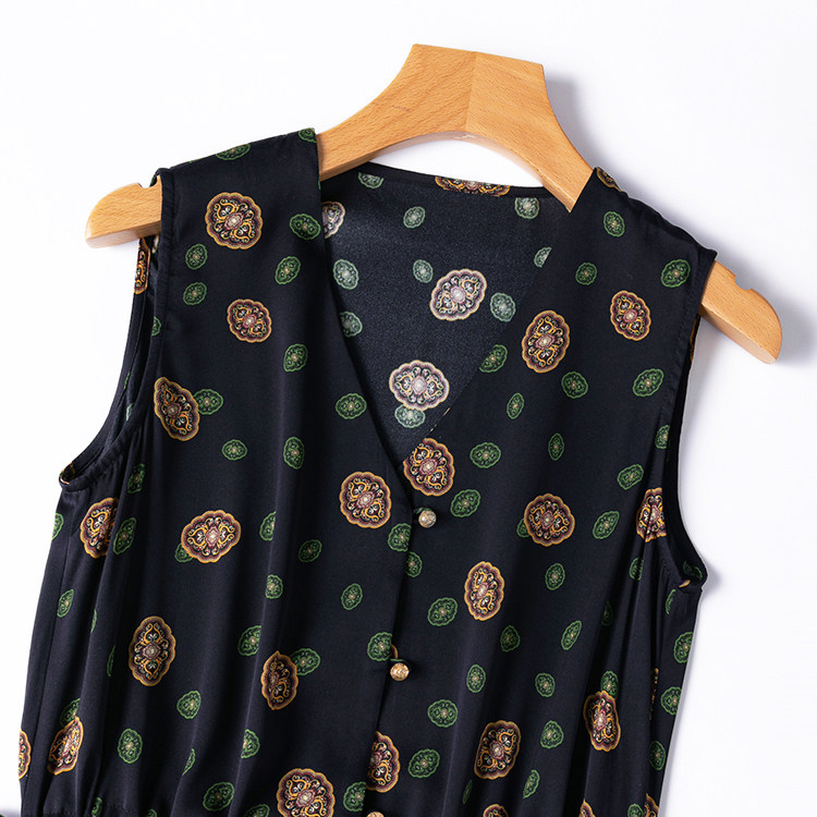 “古典神裙”丝滑真丝弹力双乔缎无袖V领收腰背心裙A字大摆连衣裙