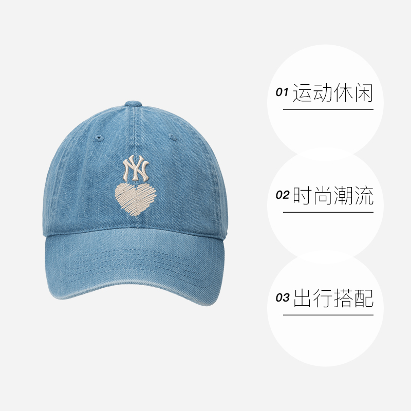 【自营】MLB帽子男女帽运动帽蓝色牛仔鸭舌帽遮阳棒球帽3ACPH024N