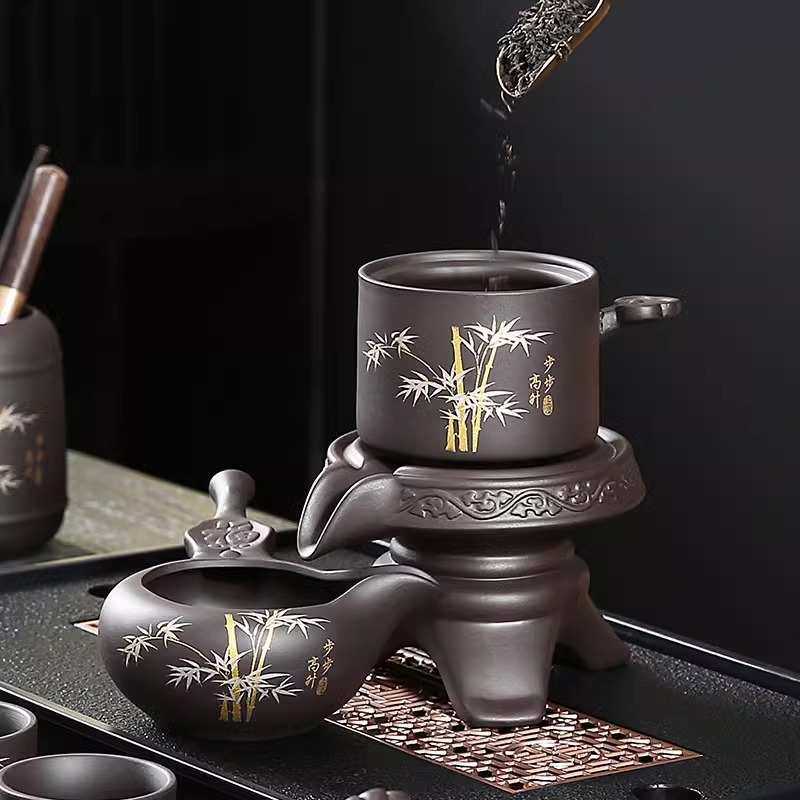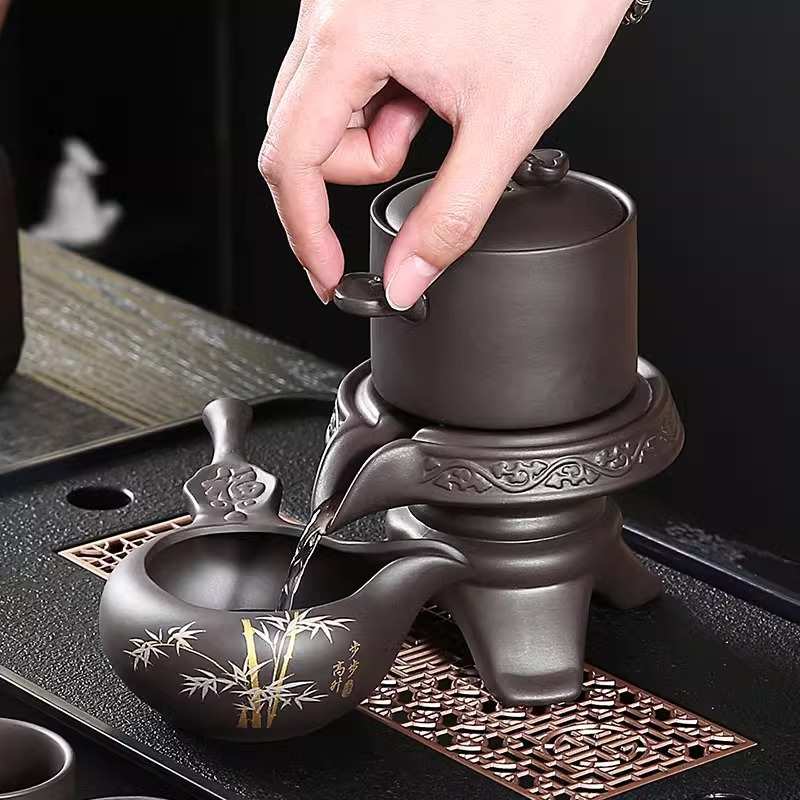 紫砂自动茶具套装创意石磨旋转懒人泡茶器步步高升茶壶一整套高档