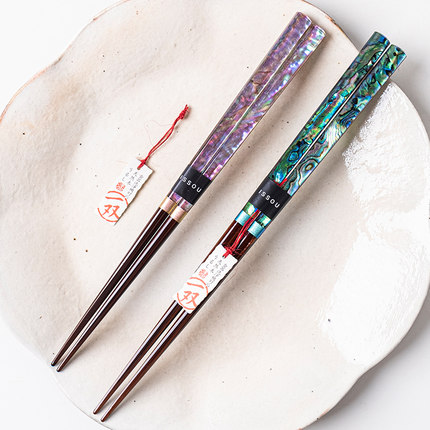 小鹿田烧 日本进口雅贝蓝粉筷子创意实木筷子家用贴花筷子尖头筷