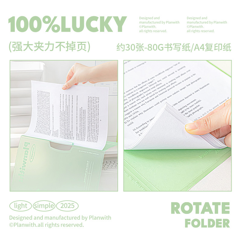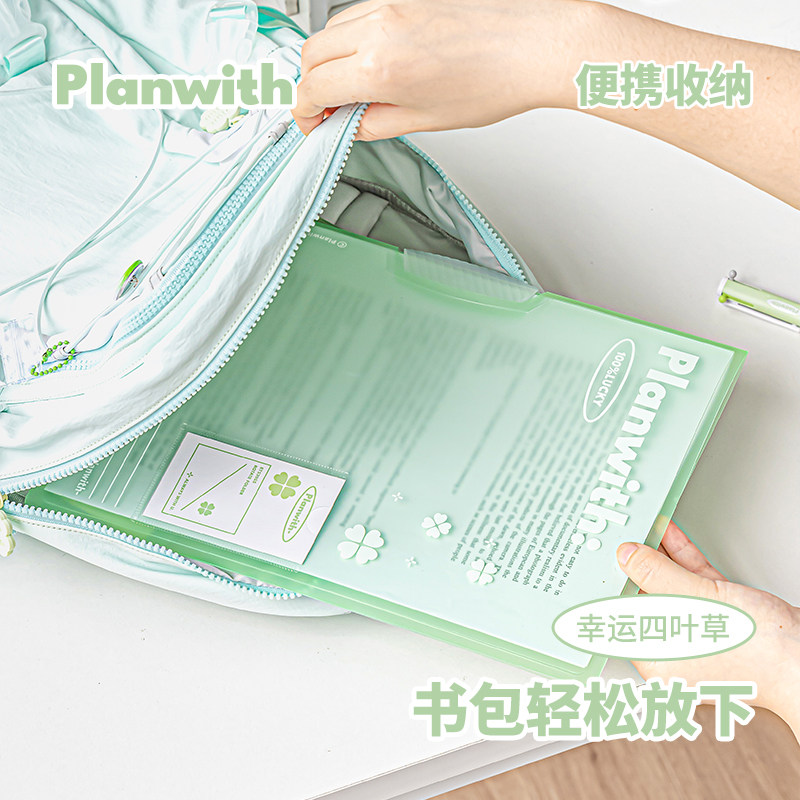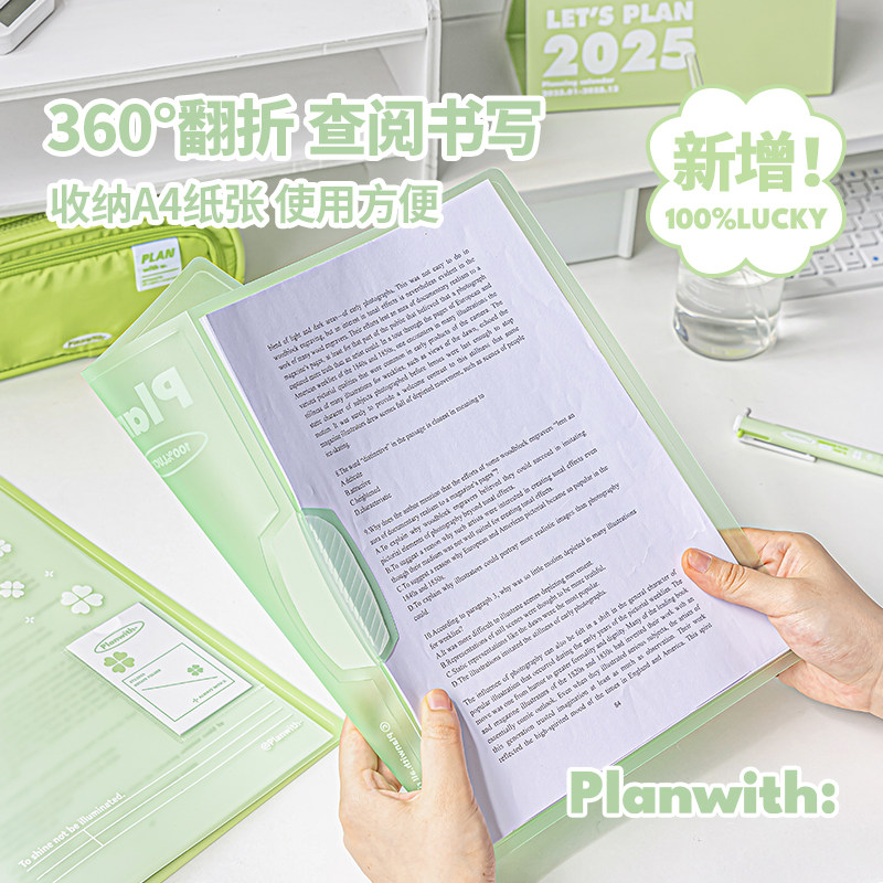 Planwith旋转文件夹a4资料夹试卷收纳袋办公用品抽杆文件夹透明插页大容量卷子收纳袋a4纸收纳夹档案夹拉杆夹