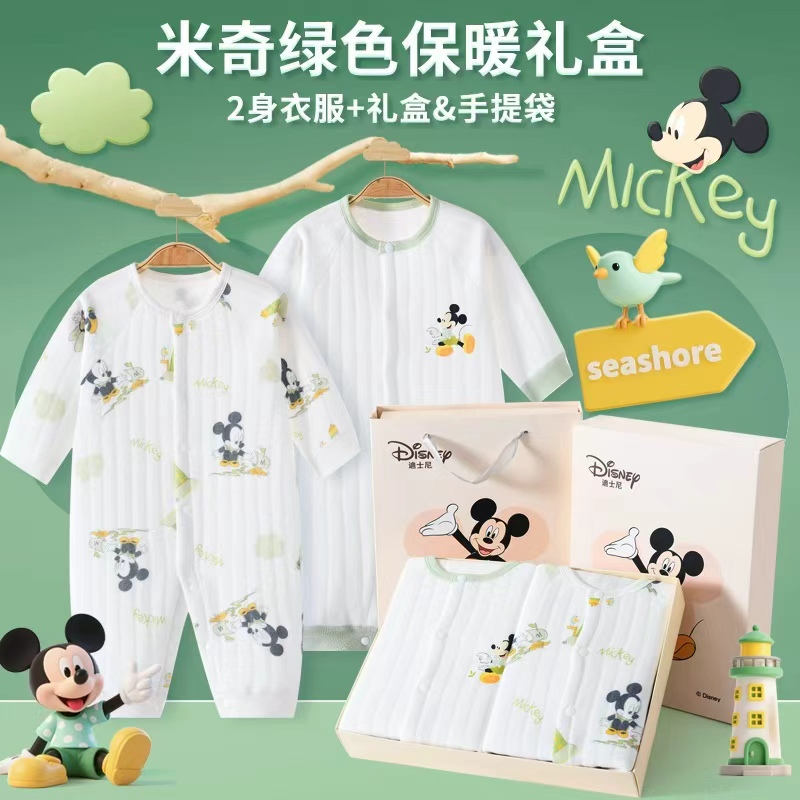 迪士尼婴儿连体衣礼盒纯棉哈衣初生男女宝宝秋冬打底衣满月周岁礼