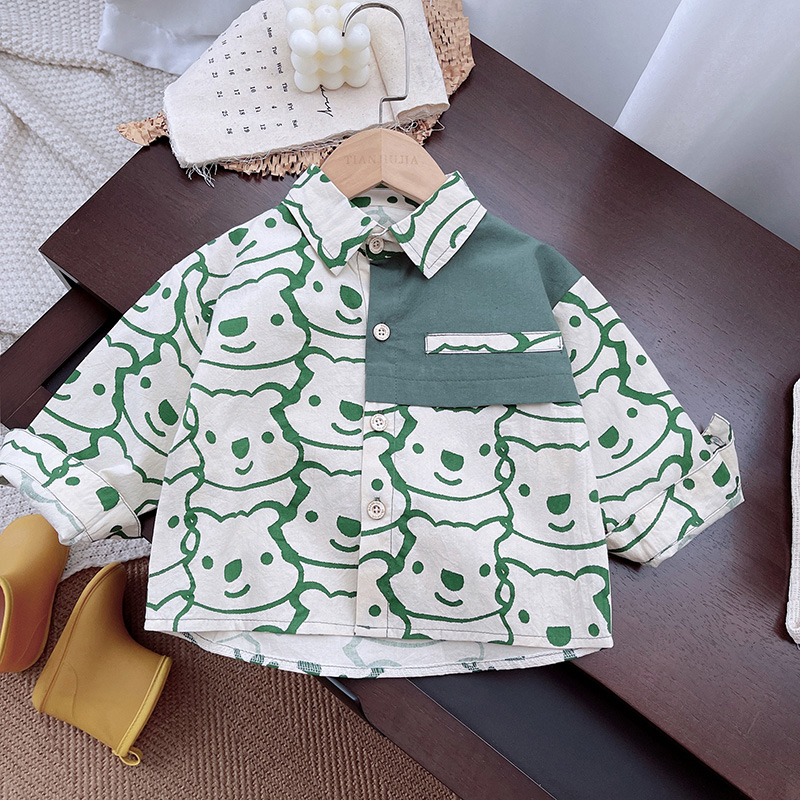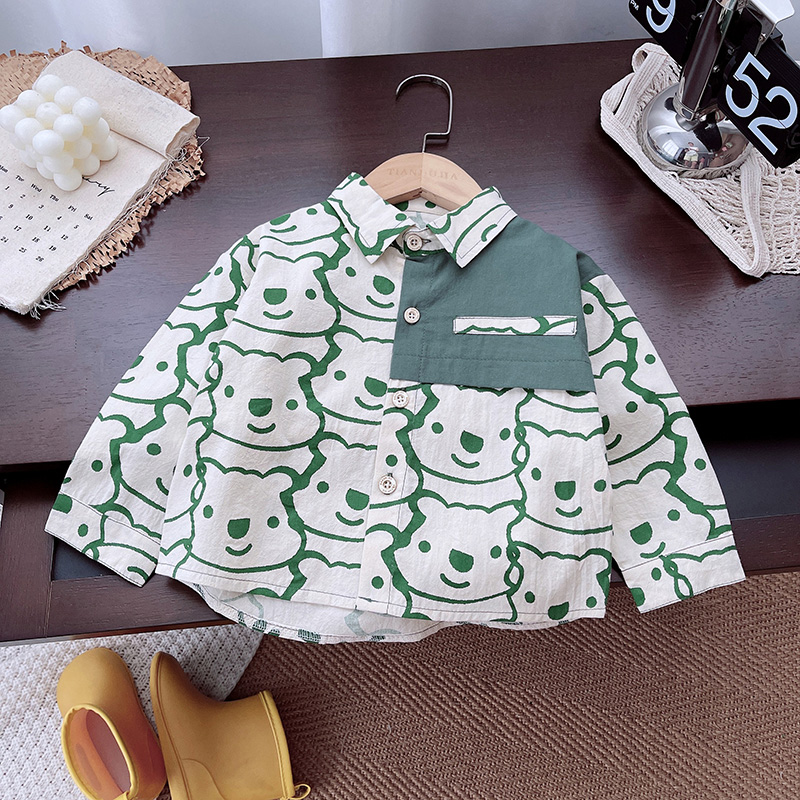 童牛仔长袖衬衫春秋儿童衬衫