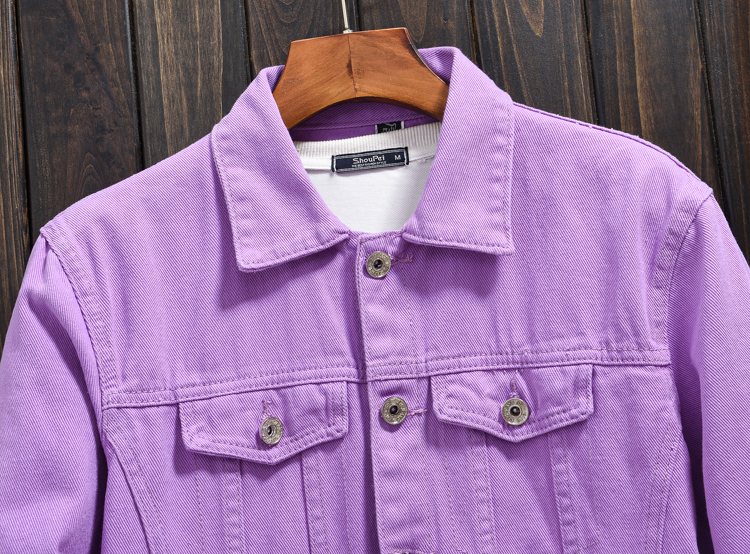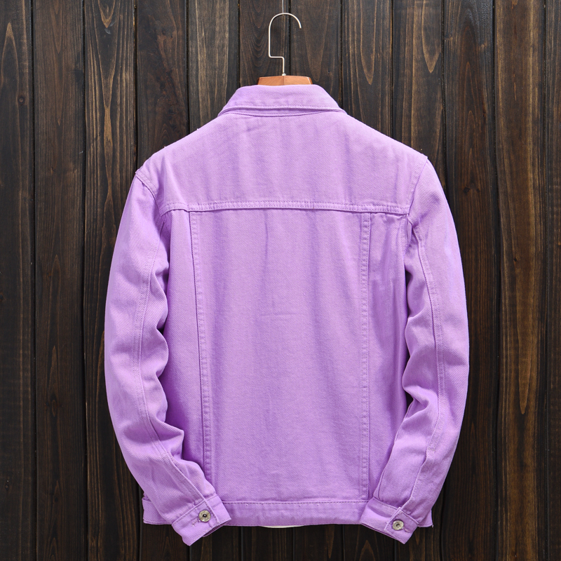 潮流男士春秋款紫色牛仔外套宽松落肩夹克纯色ins风帅气日系上衣