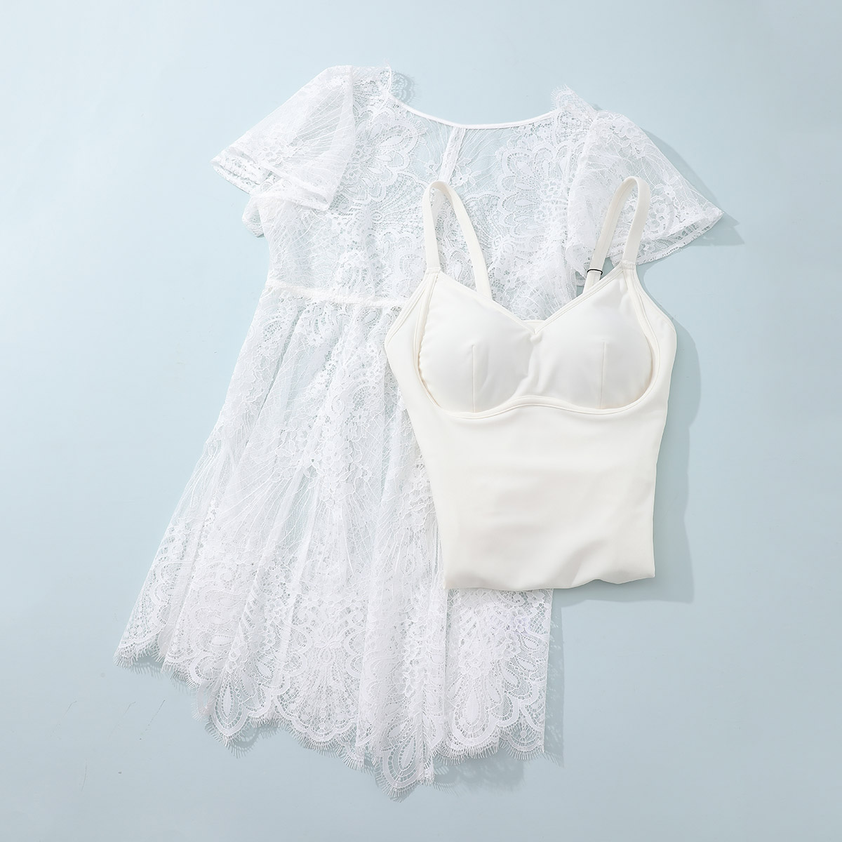 安莉芳泳装性感蕾丝修身遮肚大码仙女范裙式连体泳衣女士ES00128