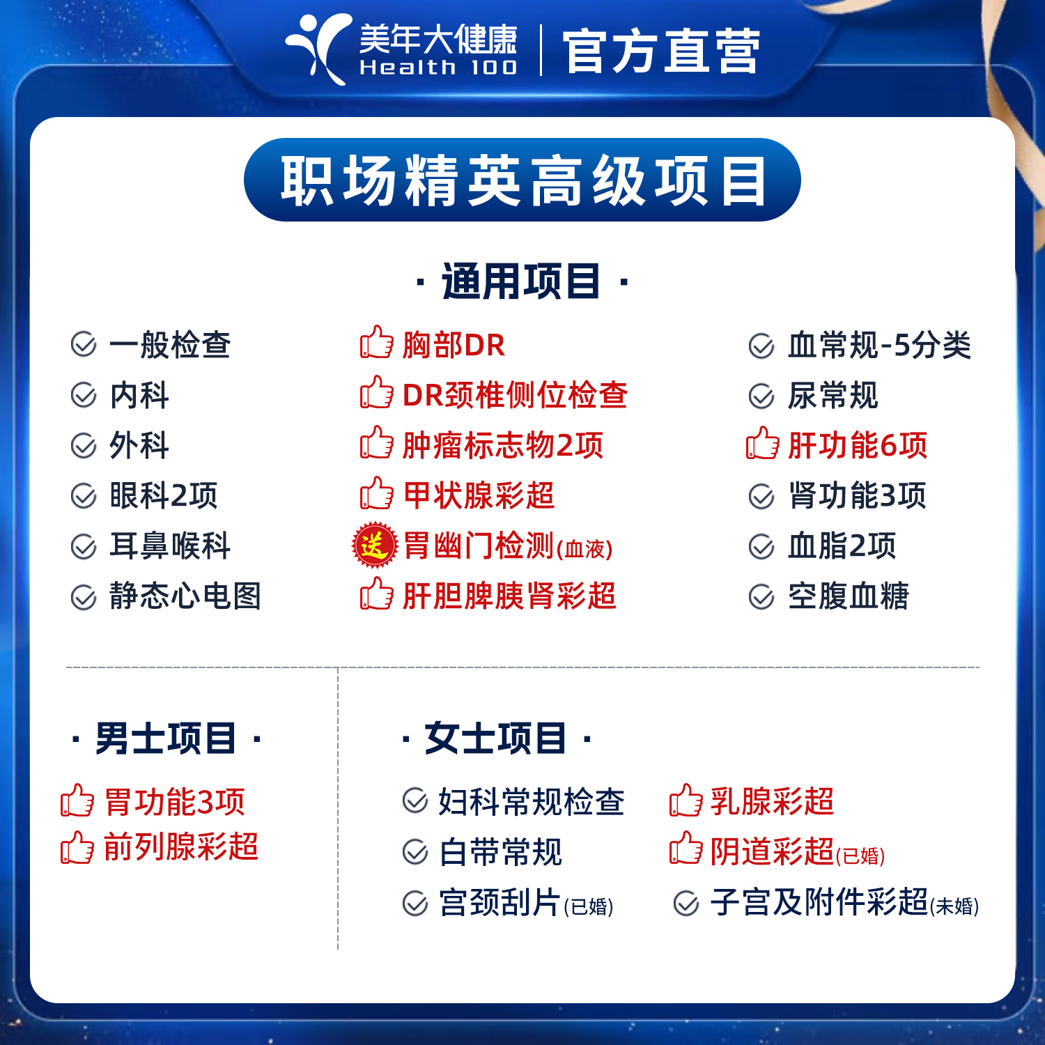 美年大健康职场精英高级体检套餐 中青年男女性全身通用体检
