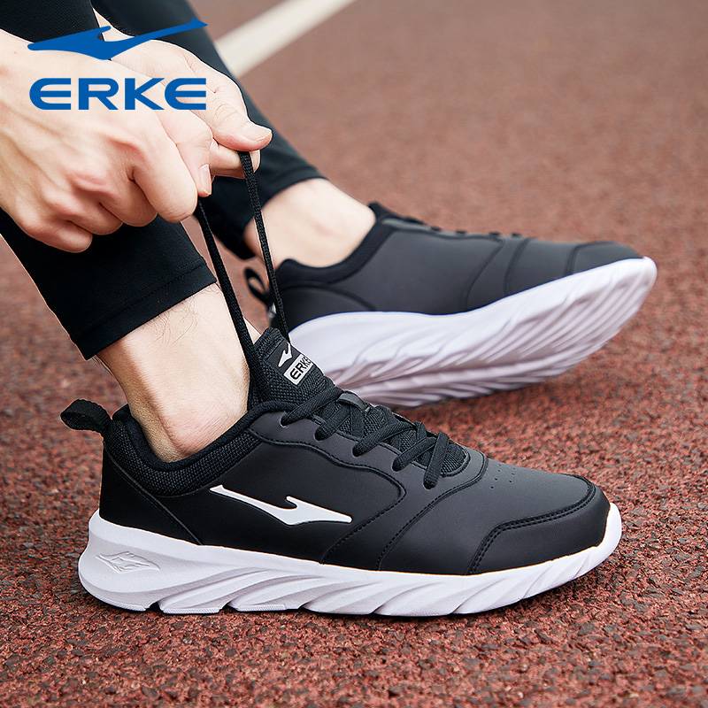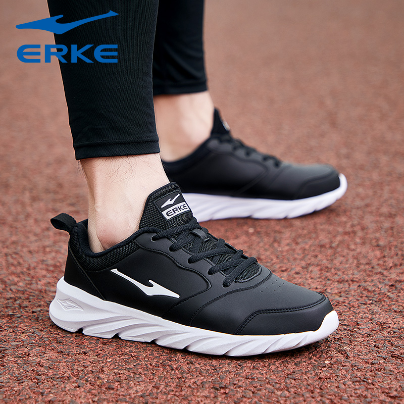 鸿星尔克运动鞋男鞋官方旗舰店红星2025新款夏季防水皮面跑步鞋子