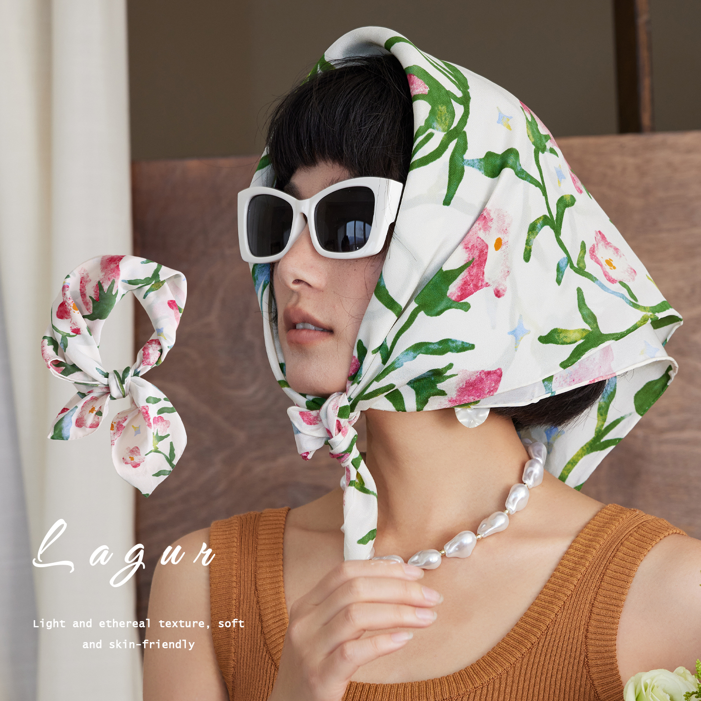 清新如风·小牵牛~手工精卷丝巾100%桑蚕丝透气遮阳头巾七夕礼物