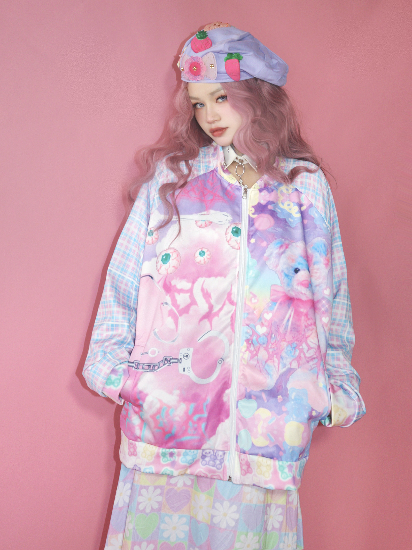 粉黛熊/Y2k棒球服外套女春秋2023秋装新款美式复古风可爱休闲上衣