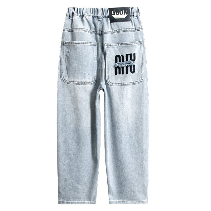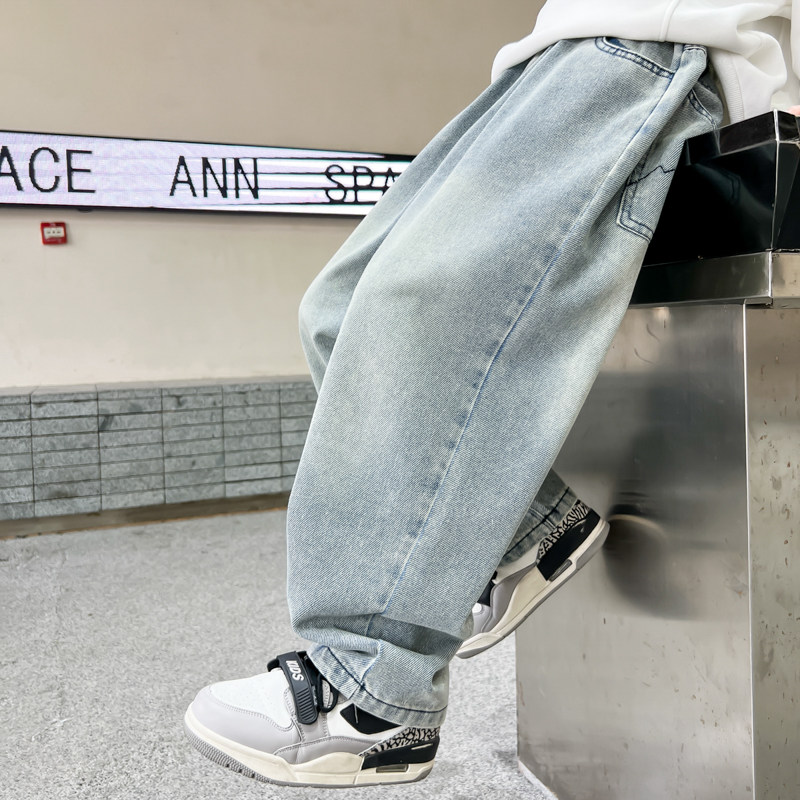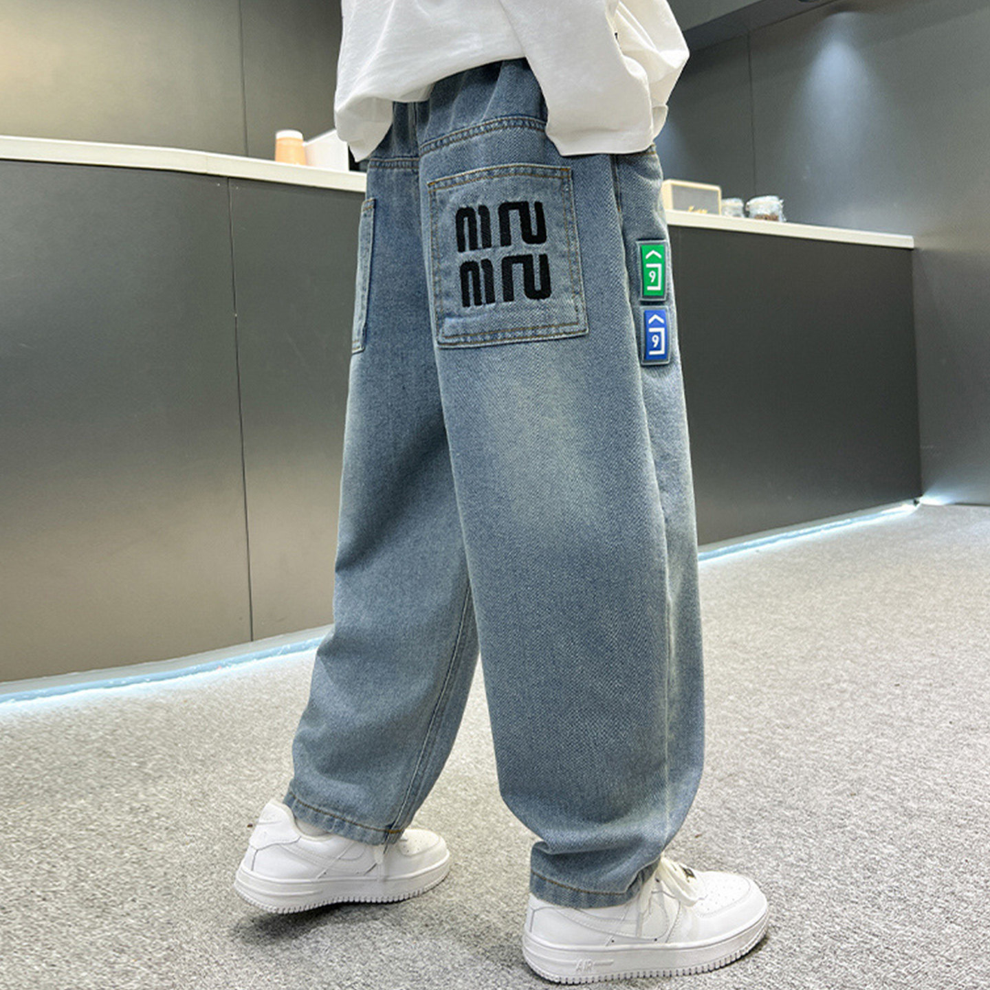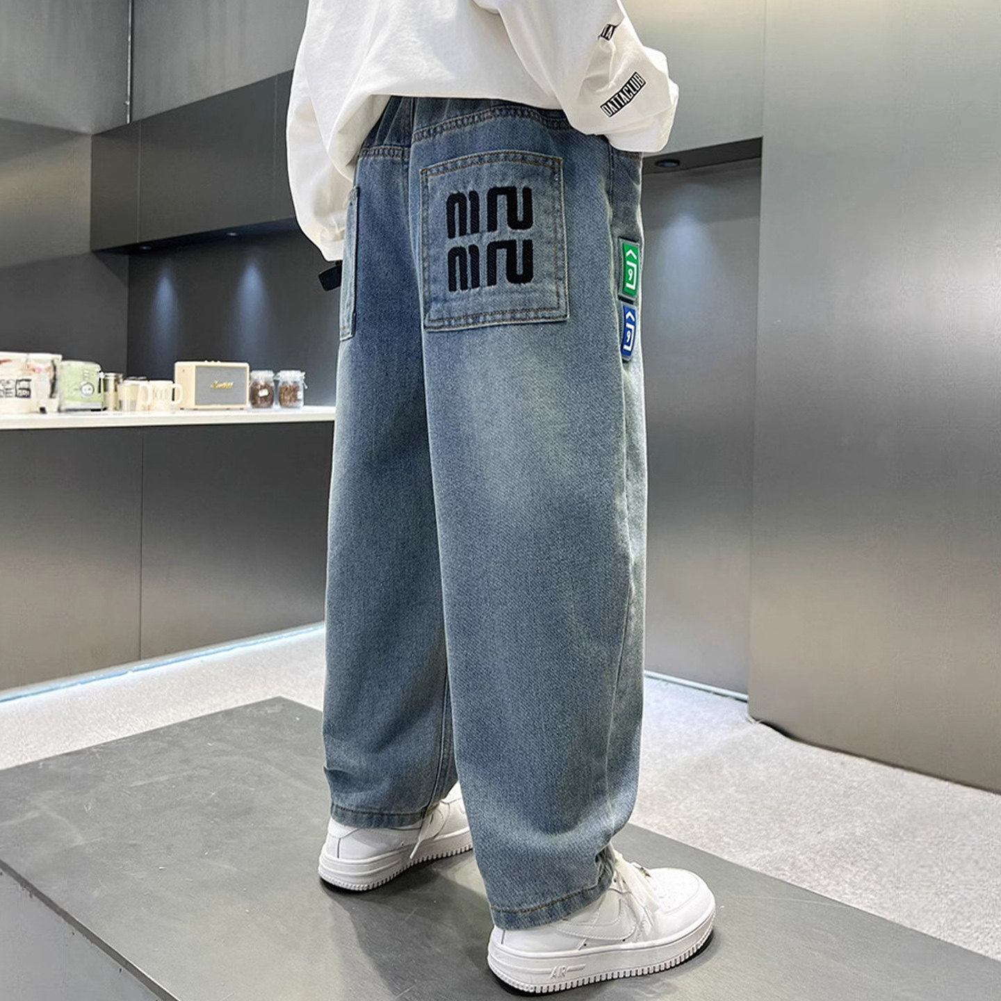 男童春秋装直筒宽松破洞牛仔裤2025新款儿童男孩秋季帅气薄款裤子