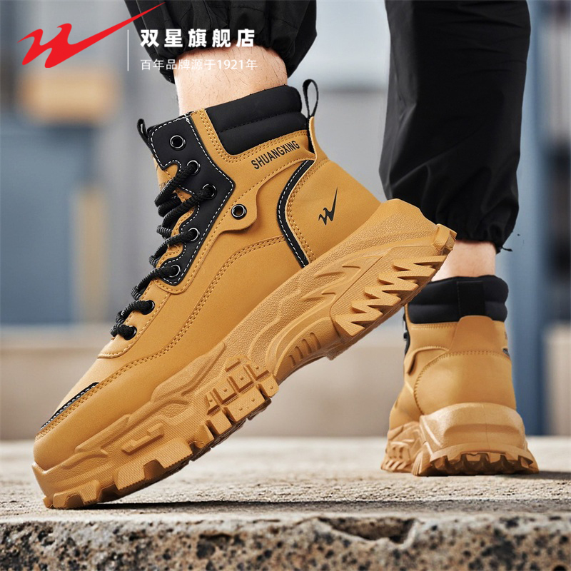 双星男鞋秋季2025新款高帮英伦风踢不烂大黄靴男士复古工装马丁靴