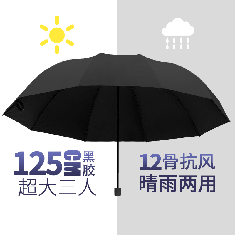 32骨手动雨伞加大加厚加固抗风暴伞男士折叠黑胶防晒伞女晴雨两用