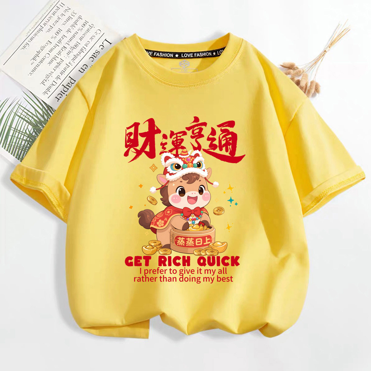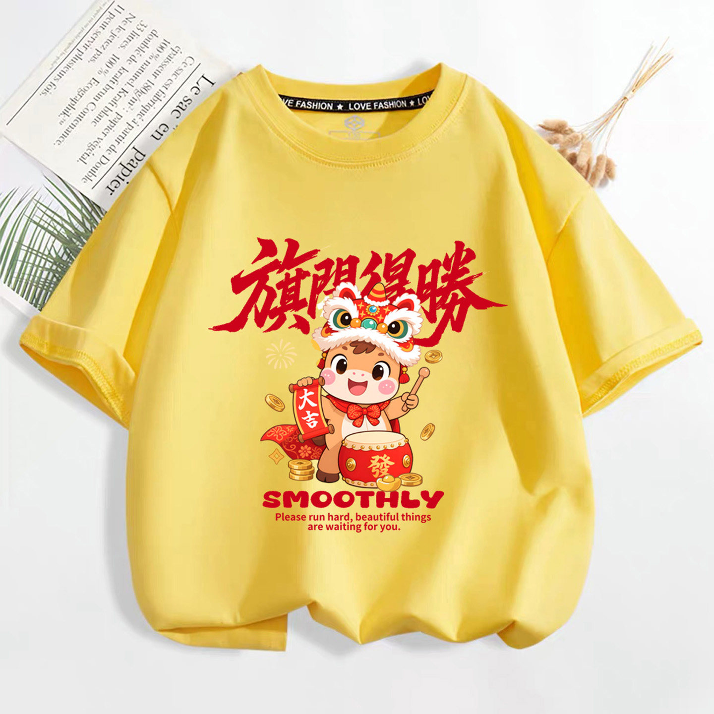 2026马年本命年t恤中国风家庭服新年一家三口四口亲子装拍照短袖