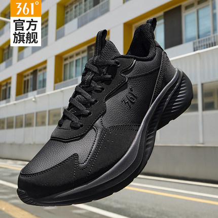 361运动鞋皮面男鞋2025秋冬新款减震防水跑步鞋子男士黑色休闲鞋