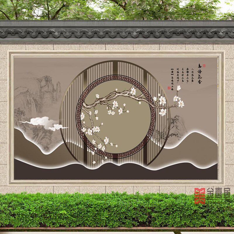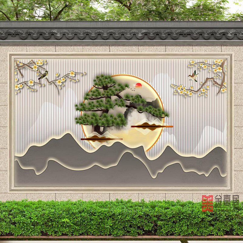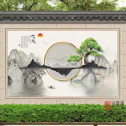 农村迎门墙福字外墙照壁瓷砖庭院影壁装饰室外背景V围墙壁画自建