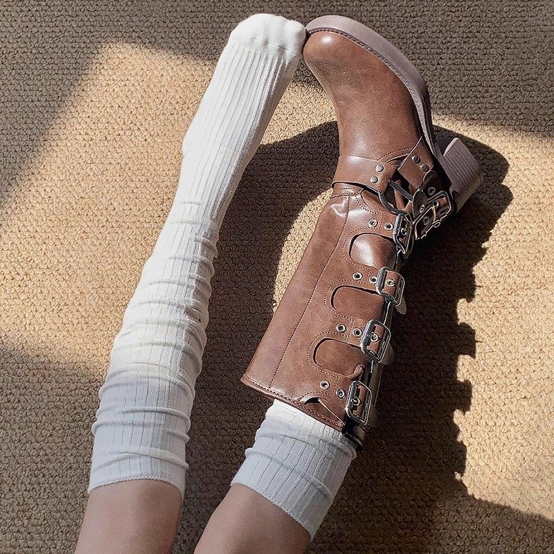 美拉德小腿袜子女搭配靴子堆堆袜春秋季棕色长筒靴袜jk过膝袜秋冬