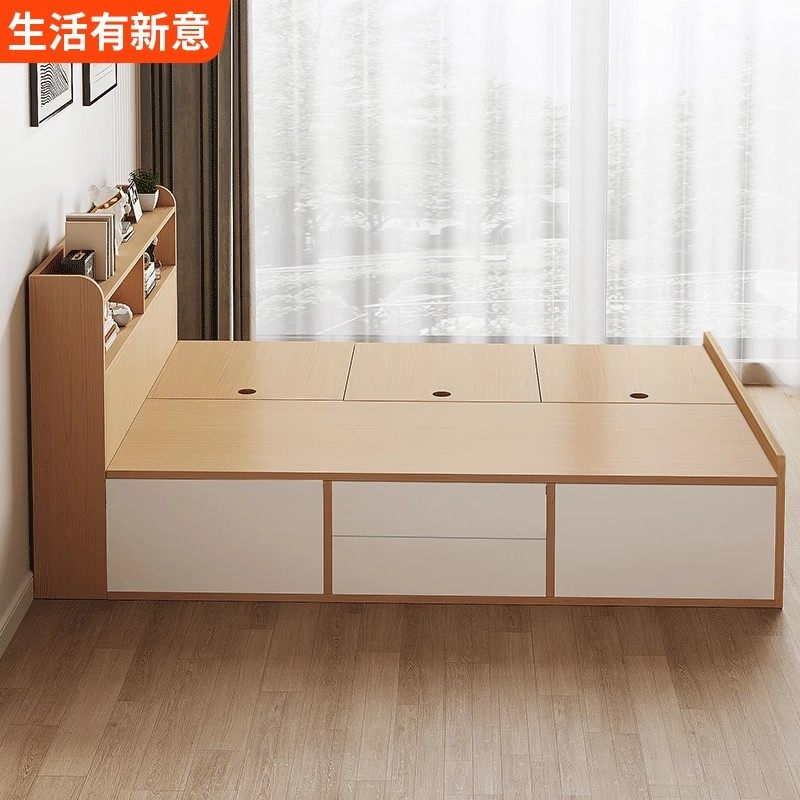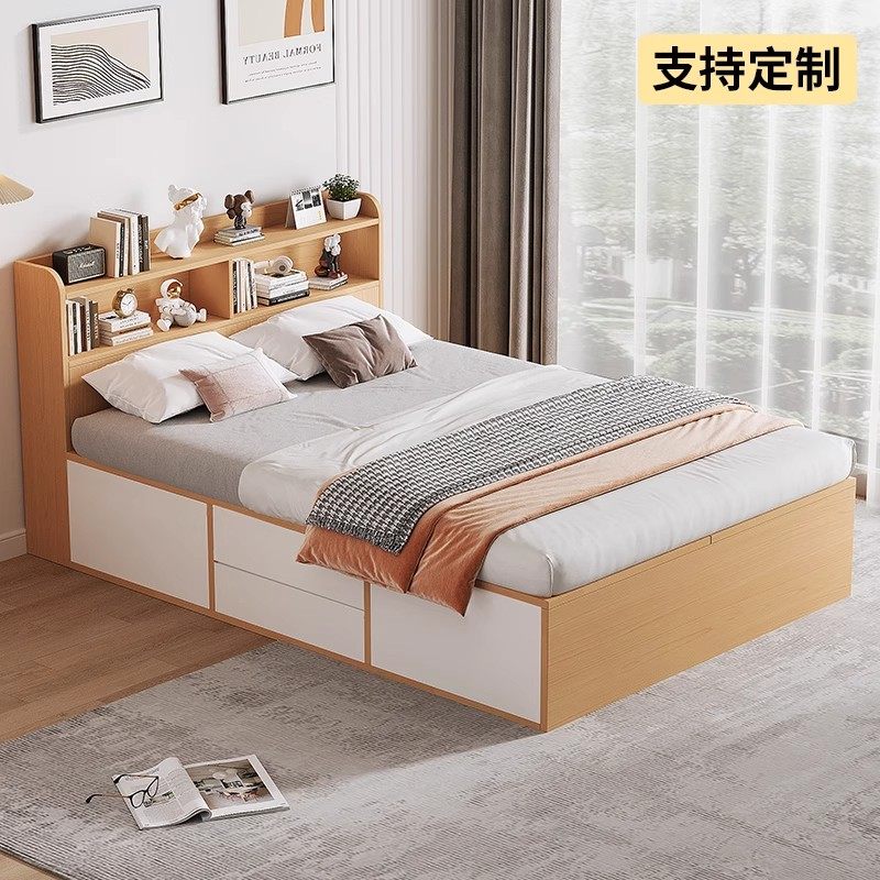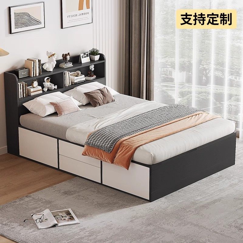 榻榻米床带书架高箱储物床1.2米小户型1.8米带抽屉家用卧室双人床