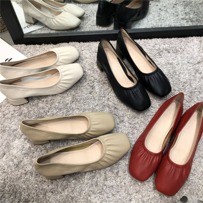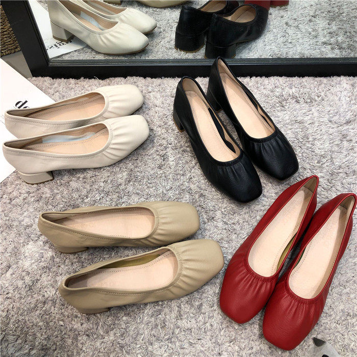 软到不像话!2020秋季新品韩国东大门个性褶皱方头浅口通勤OL单鞋