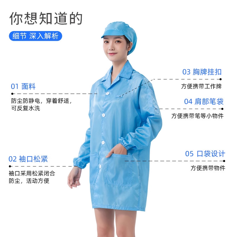 防静电衣白粉蓝黄色大褂无尘防护工作衣服男女电子工厂车间防尘衣