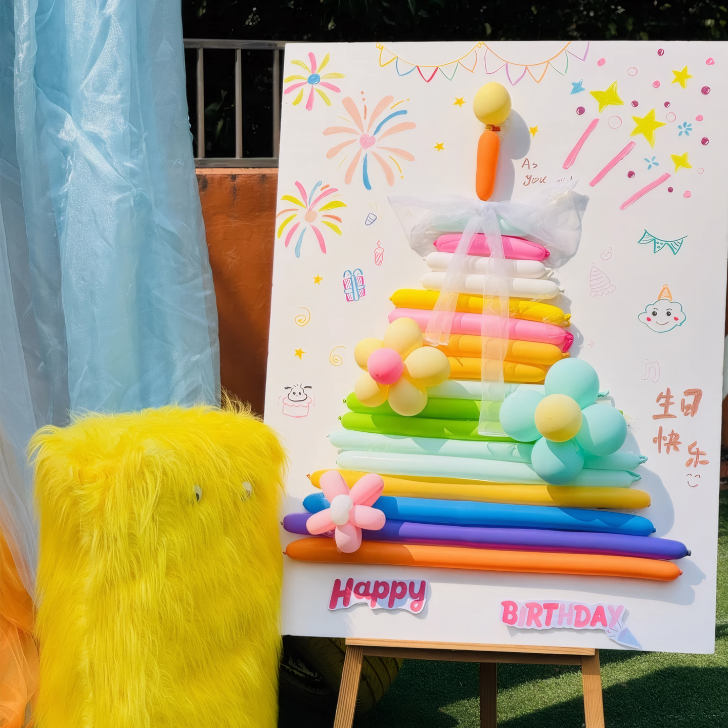 生日蛋糕kt板气球布置周岁场景户外派对多巴胺彩虹迎宾牌背景装饰