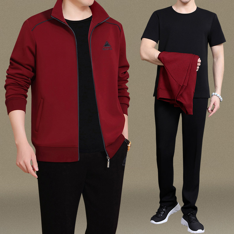 爸爸春秋运动套装男士三件套2023新款中老年休闲卫衣运动服大码男