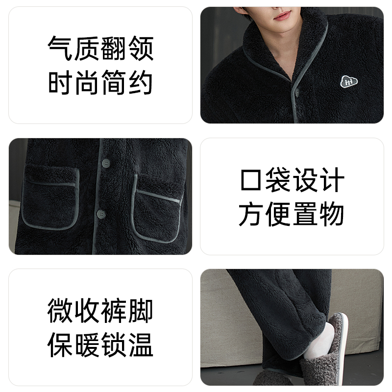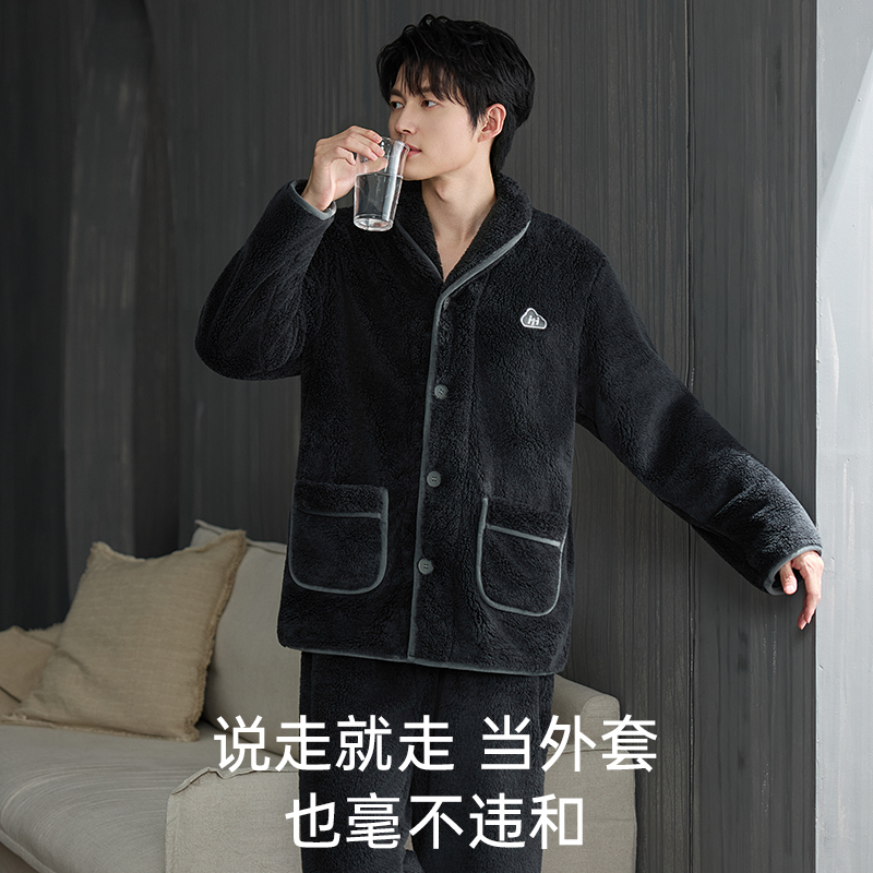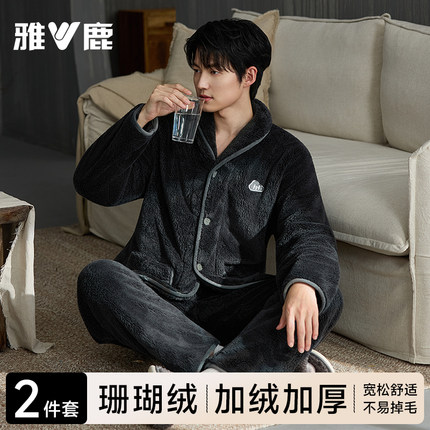雅鹿男款珊瑚绒睡衣秋冬季保暖加绒加厚大码法兰绒家居服套装新款
