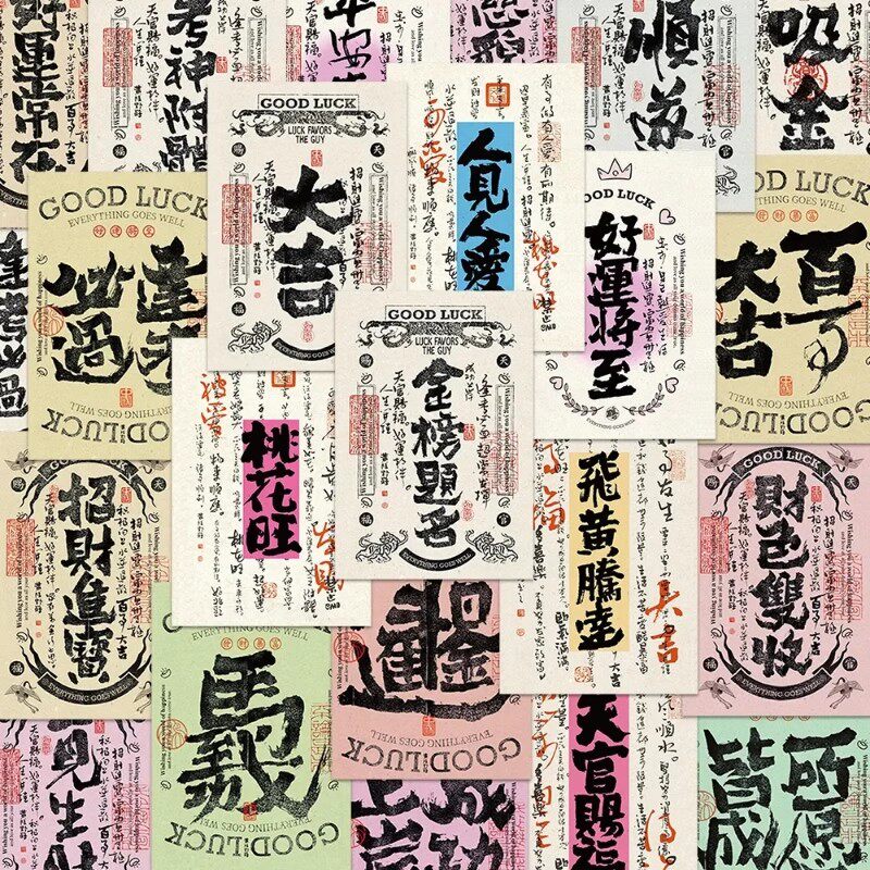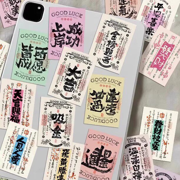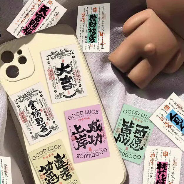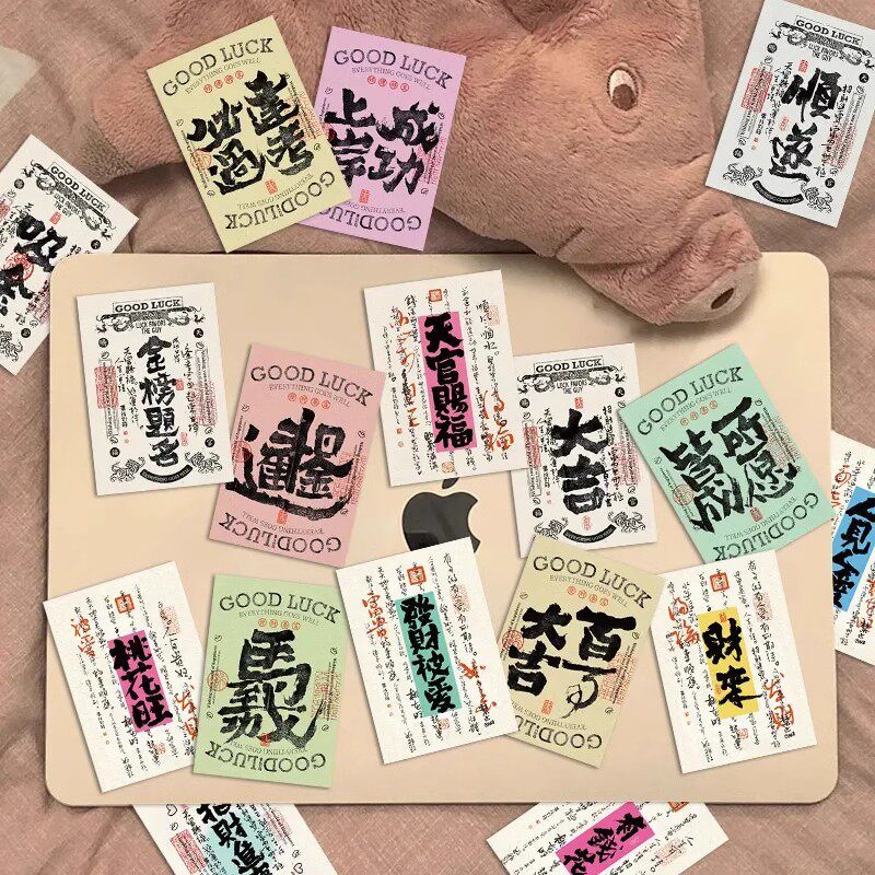 192张招财好运励志贴纸中国风书法新年创意装饰手机壳diy防水贴画