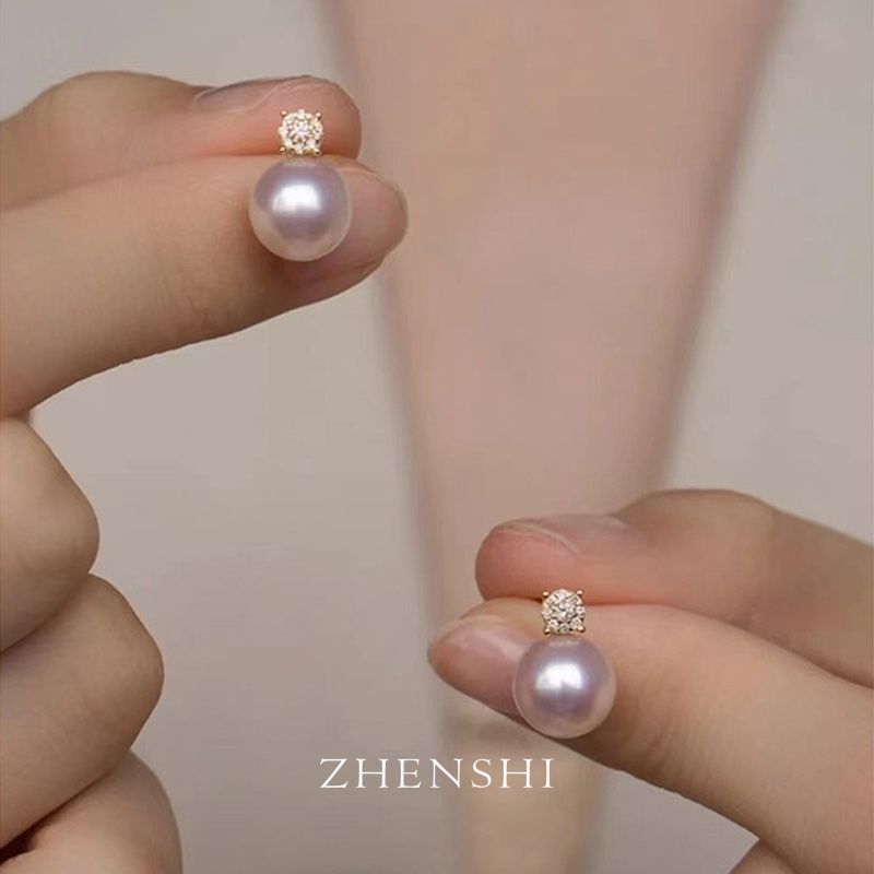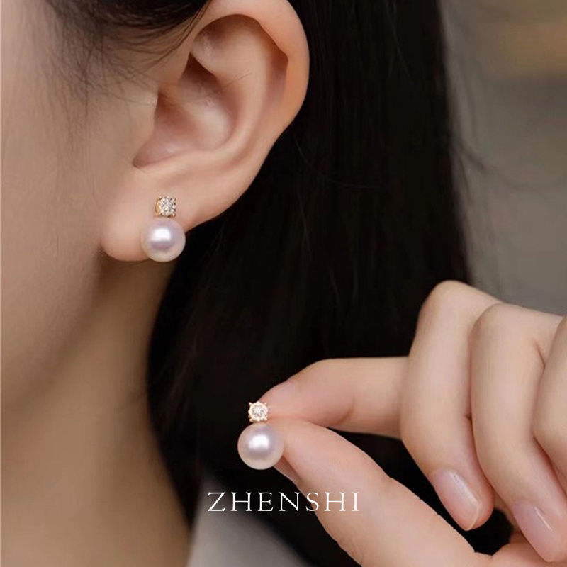 珍氏珠宝戴妃天然淡水珍珠耳钉耳环女款 正圆时尚百搭高级感耳饰
