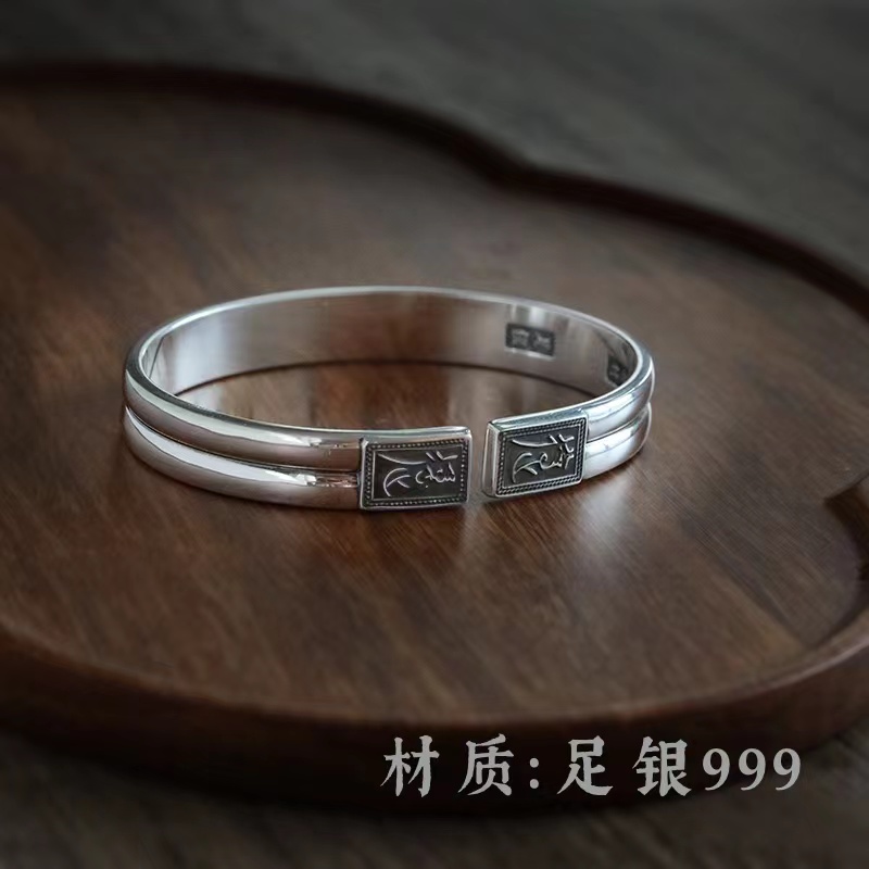 《逍遥》99足银纯银双轨道老式文艺手镯 喜竹原创小众设计