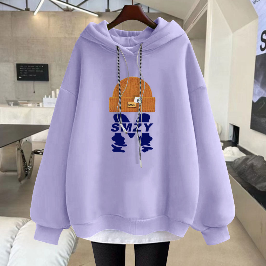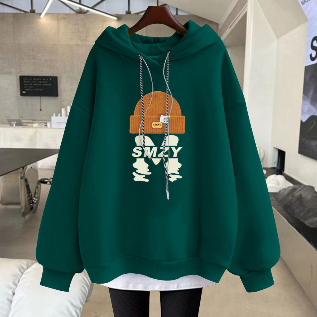 字母中长款连帽卫衣宽松