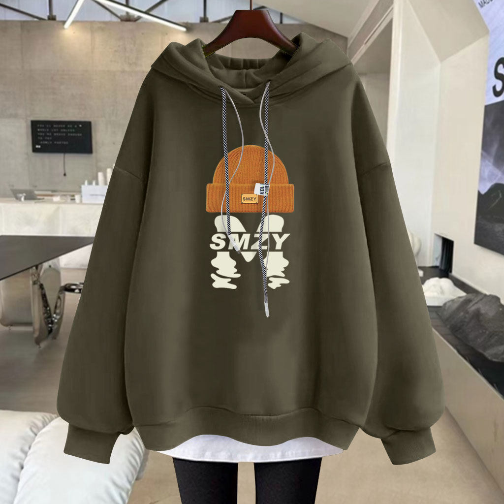 2025春秋冬季新款带帽字母中长款加绒加厚宽松套头连帽卫衣女潮