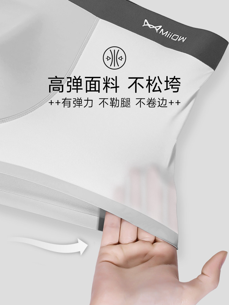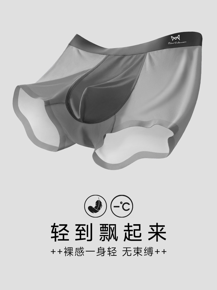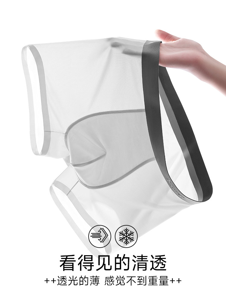 猫人男士内裤冰丝男生超薄透气夏季凉感四角裤无痕青年大码短裤衩