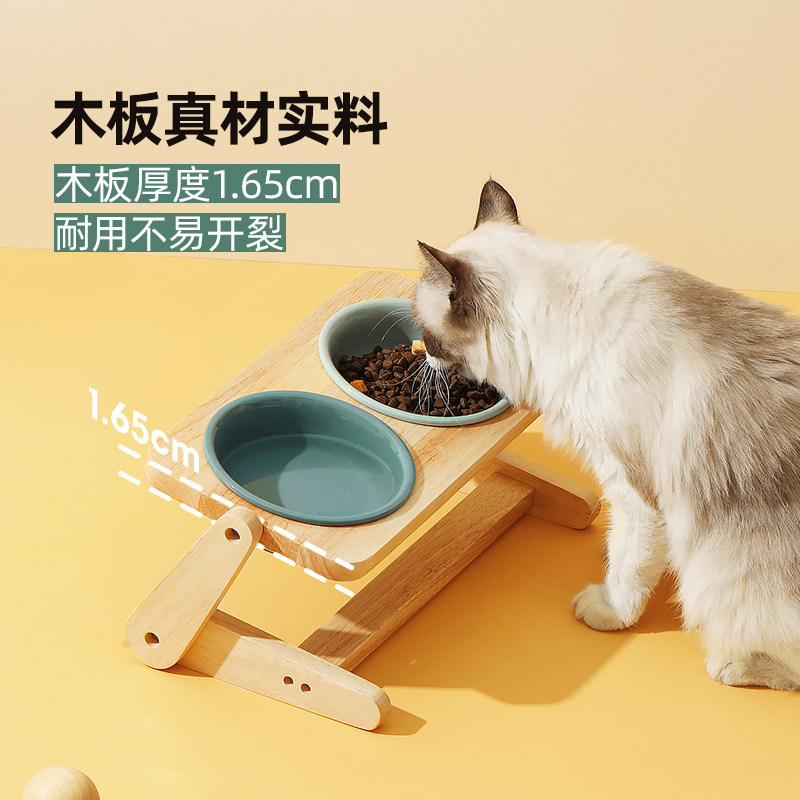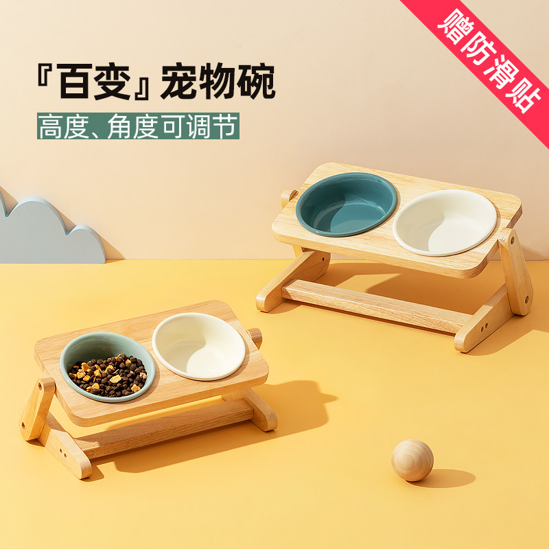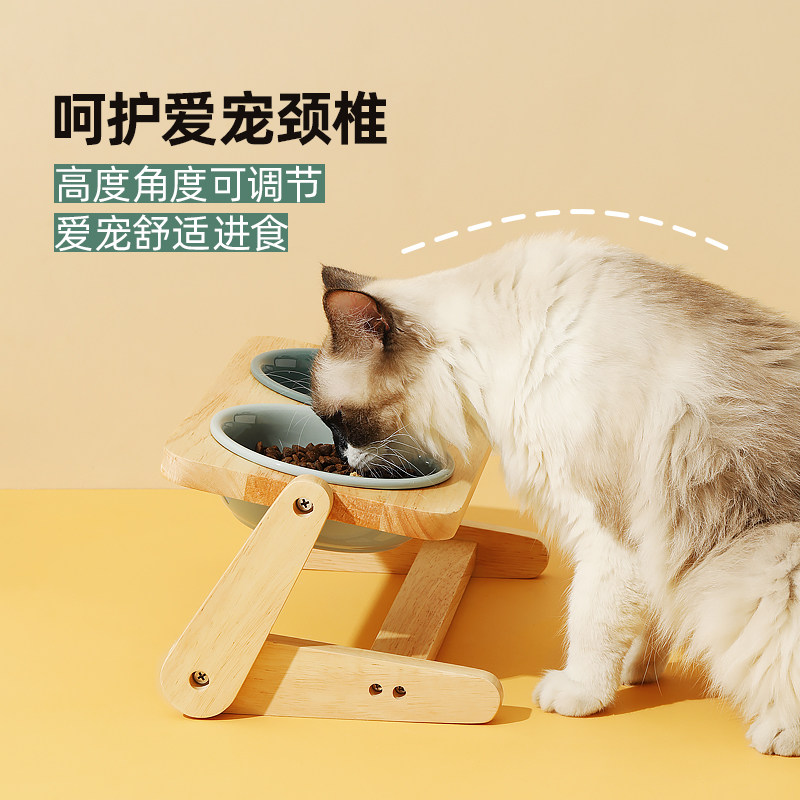 陶瓷猫碗护颈椎猫咪水碗猫食盆木架狗狗猫粮碗防打翻斜口宠物狗碗