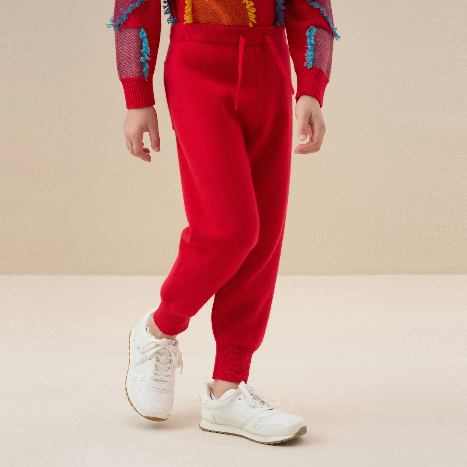 鄂尔多斯童装新年红色羊绒裤男女童休闲裤秋冬新品纯绒松紧腰