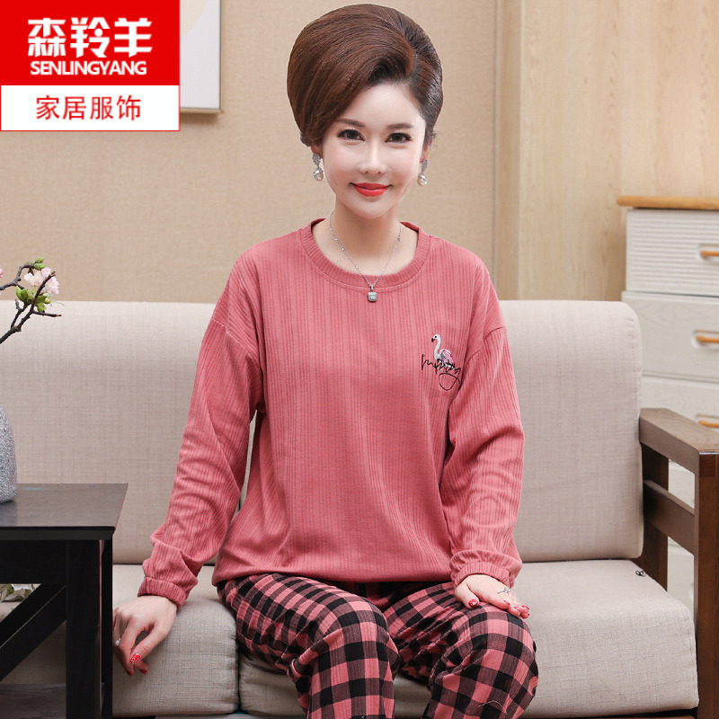 妈妈中年女士全棉长袖套装睡衣