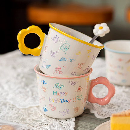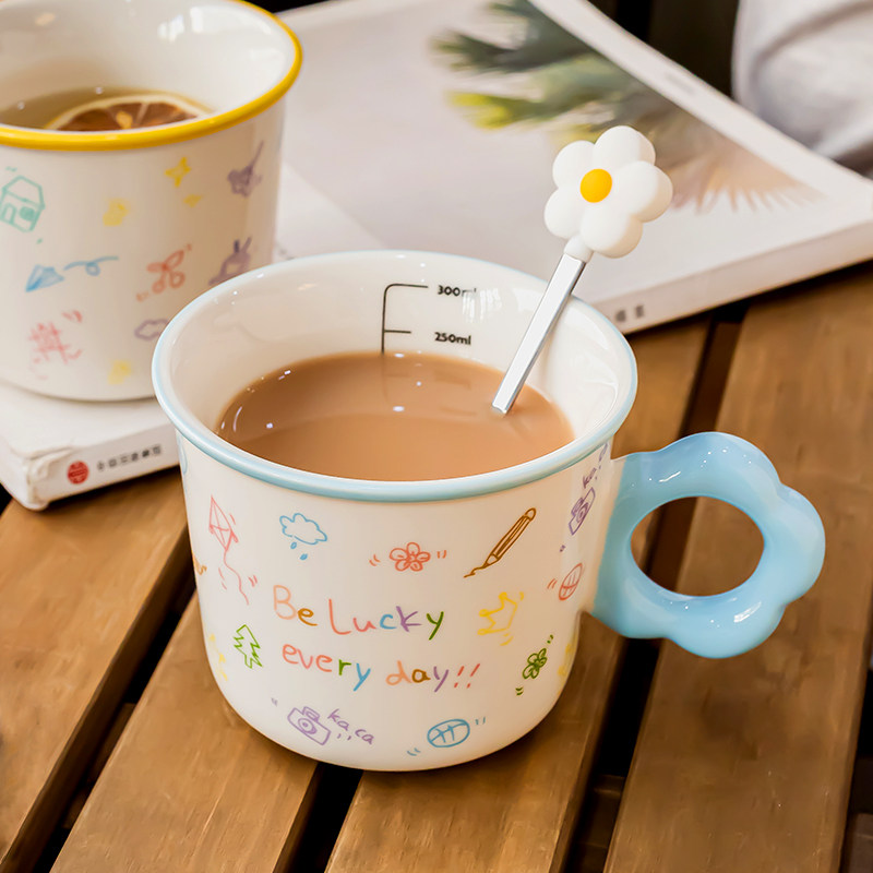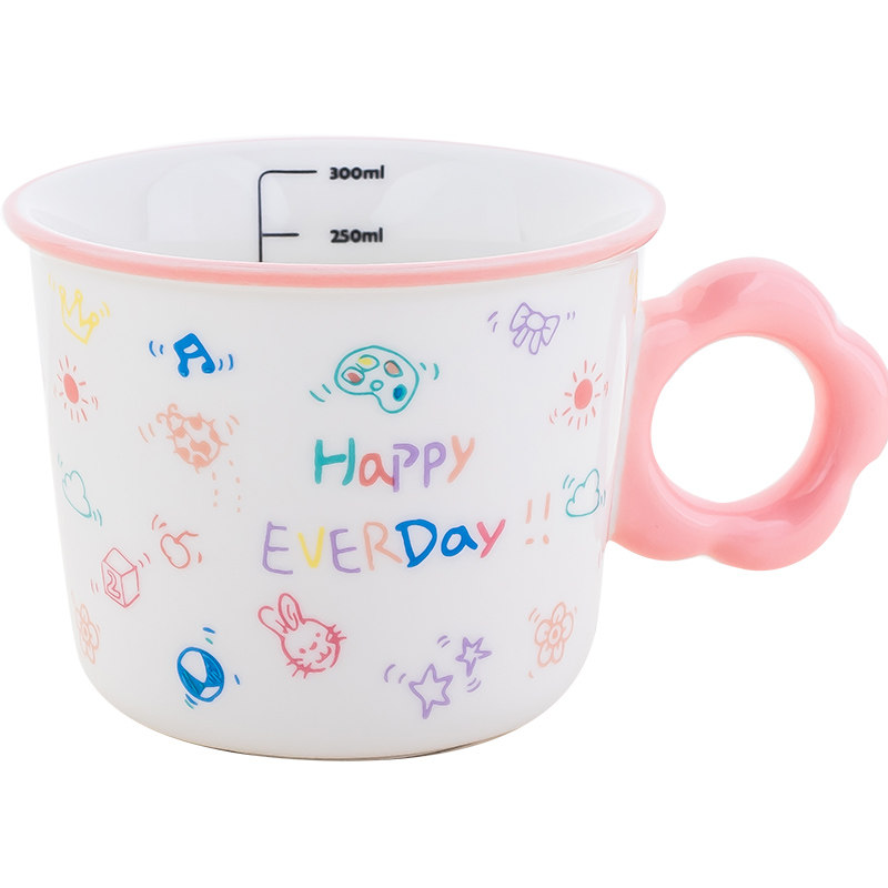 儿童陶瓷马克杯带刻度牛奶燕麦杯子高颜值女生早餐杯可微波炉水杯