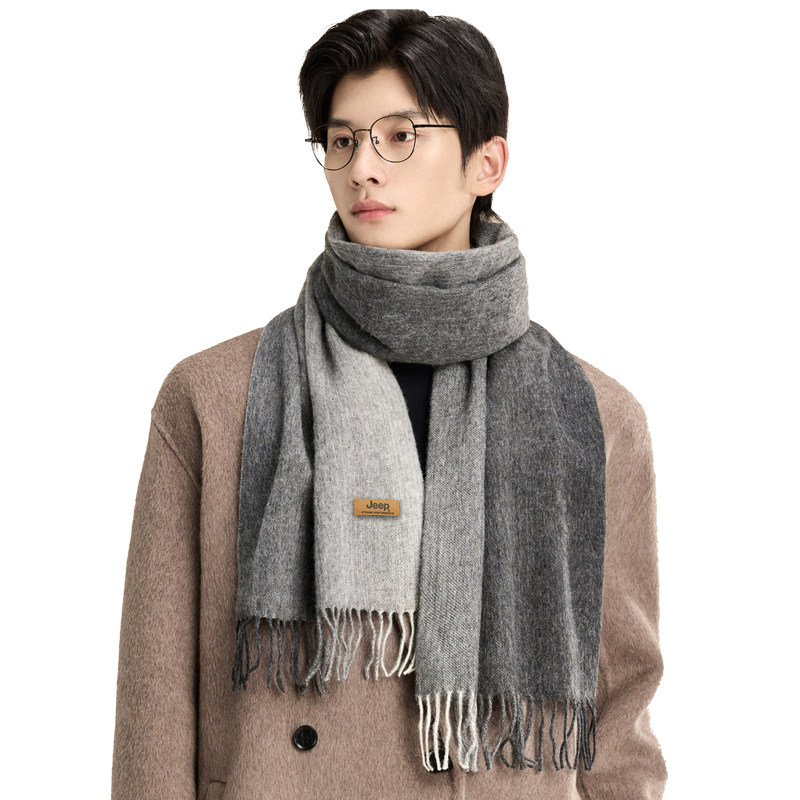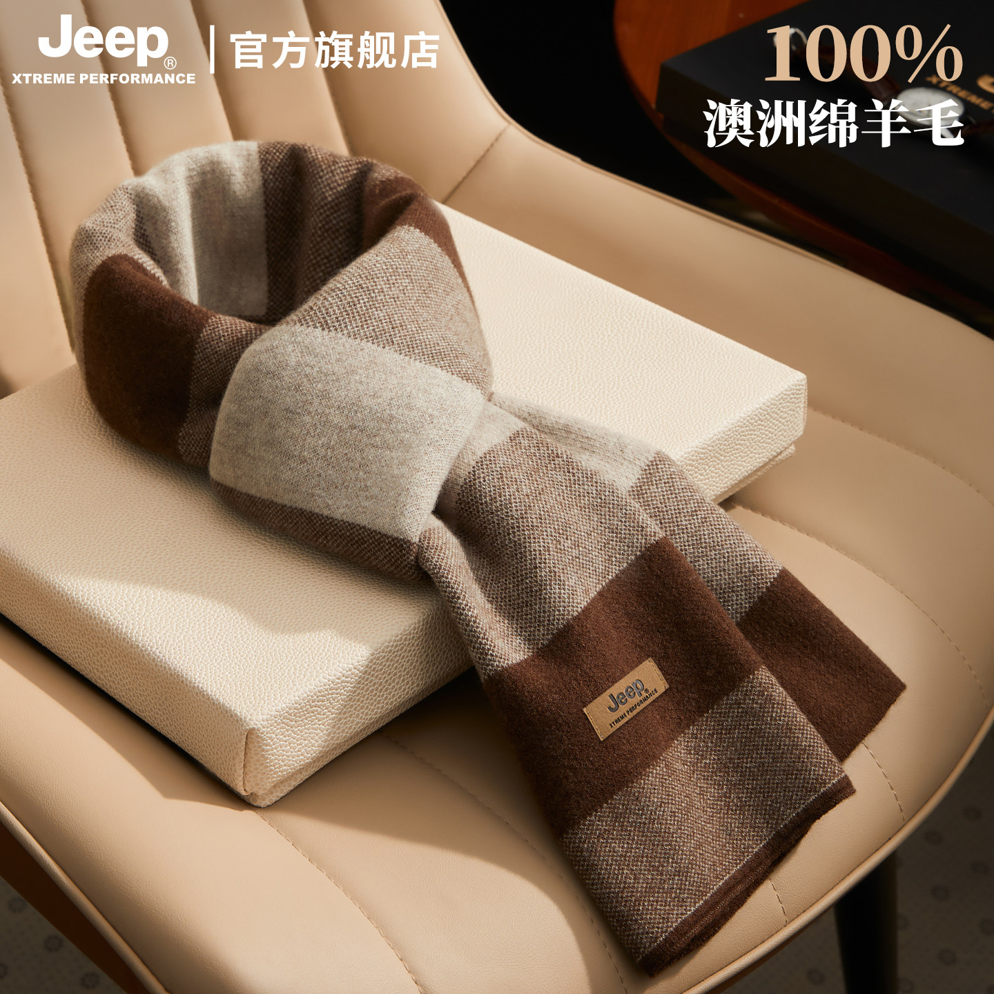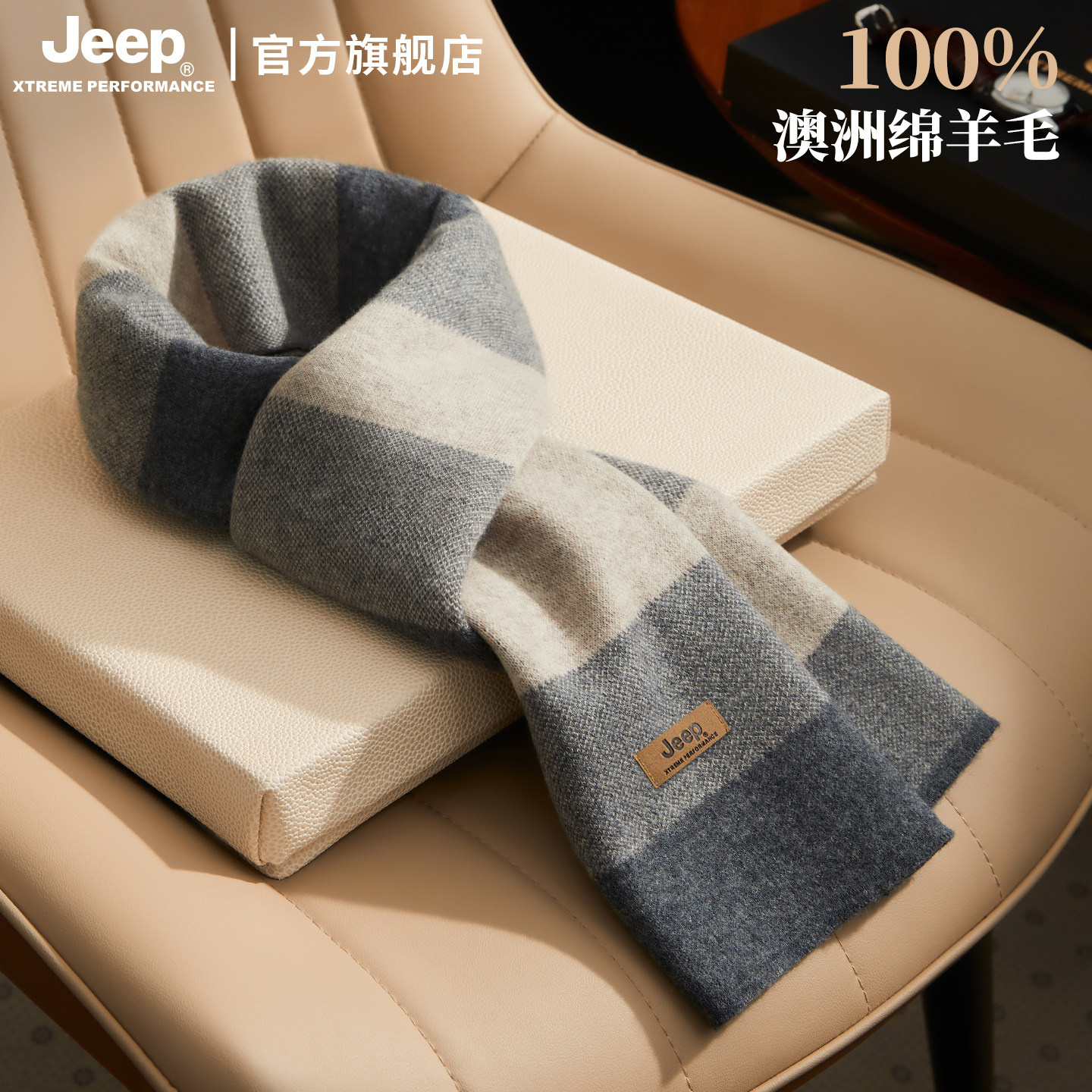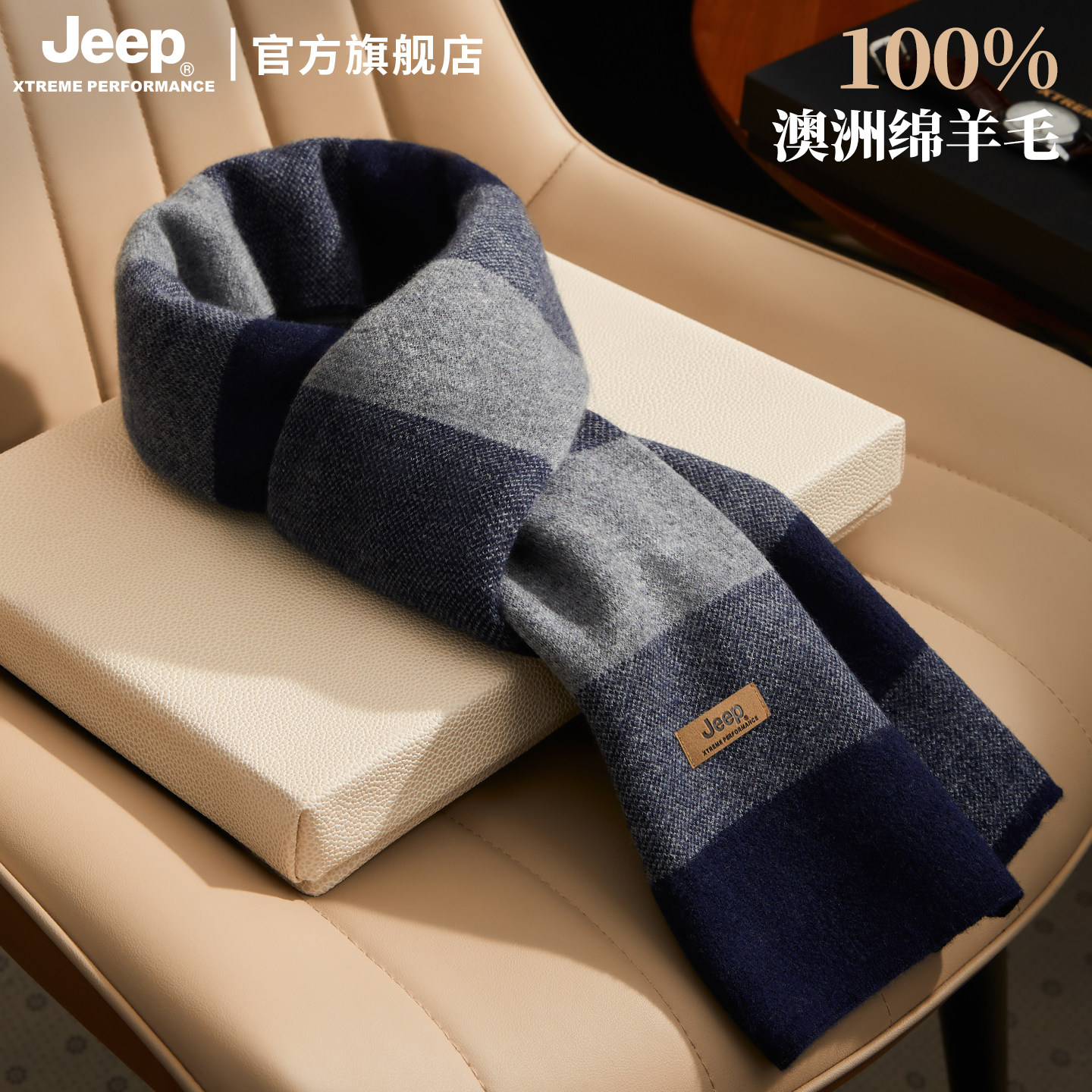 jeep吉普100%绵羊毛围巾男士冬季保暖围脖高端礼盒装送男友礼物冬